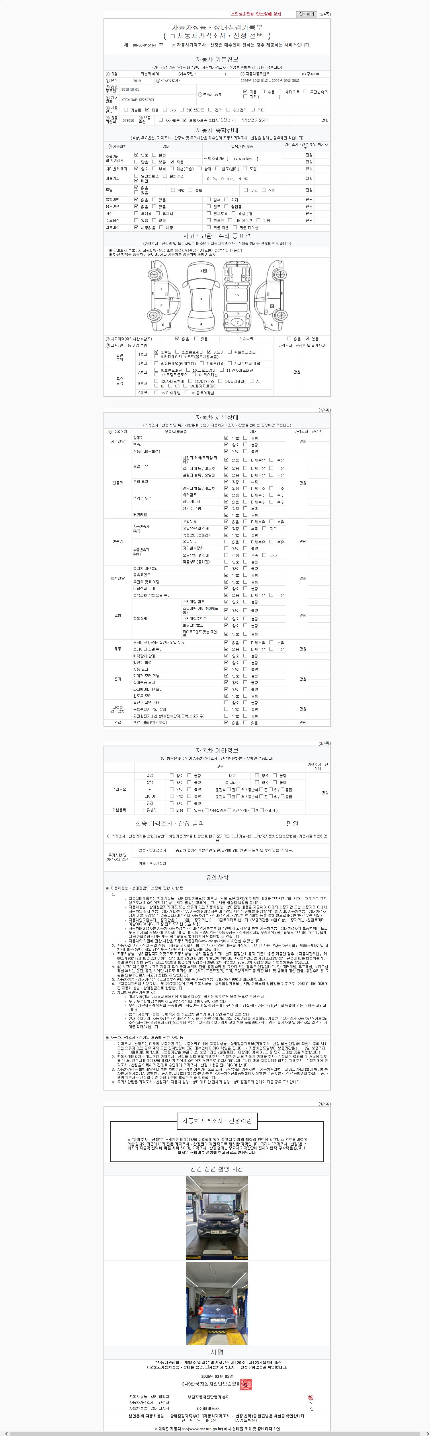 | 주행거리 | 77,614 km | 차량번호 | 67구1838 |