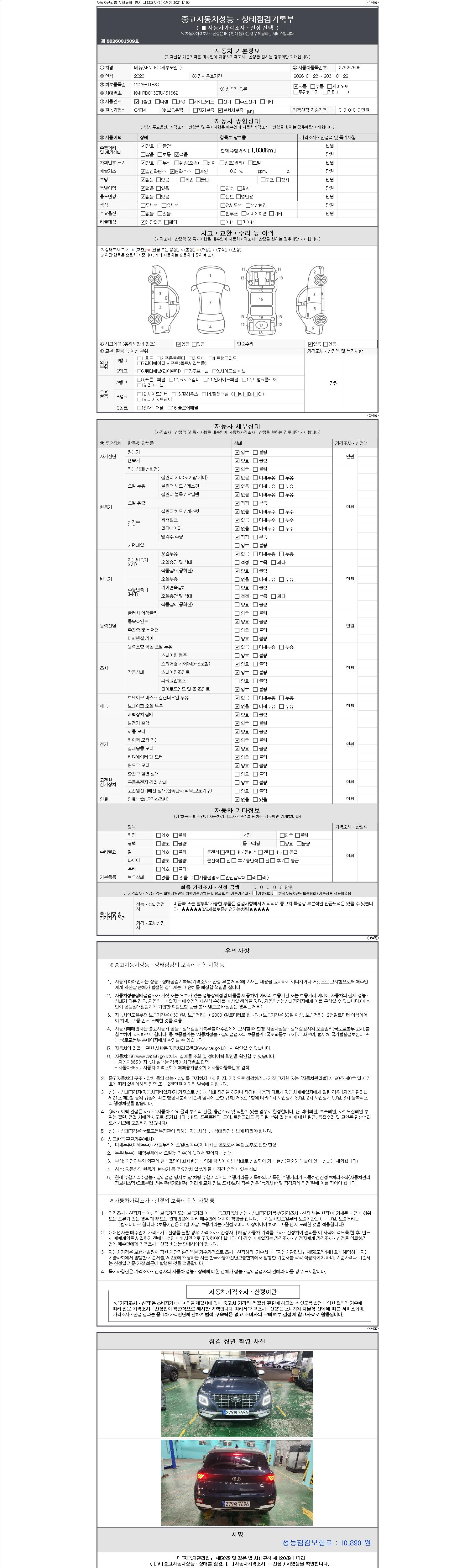 -중고자동차 매매업자를 통해 차량을 구입하실 경우 반드시 "중고자동차 성능, 상태점검 기록부"를 교뷰 받으셔야 하며, 매매업자는 반드시 의무 교부 하여야 압니다.