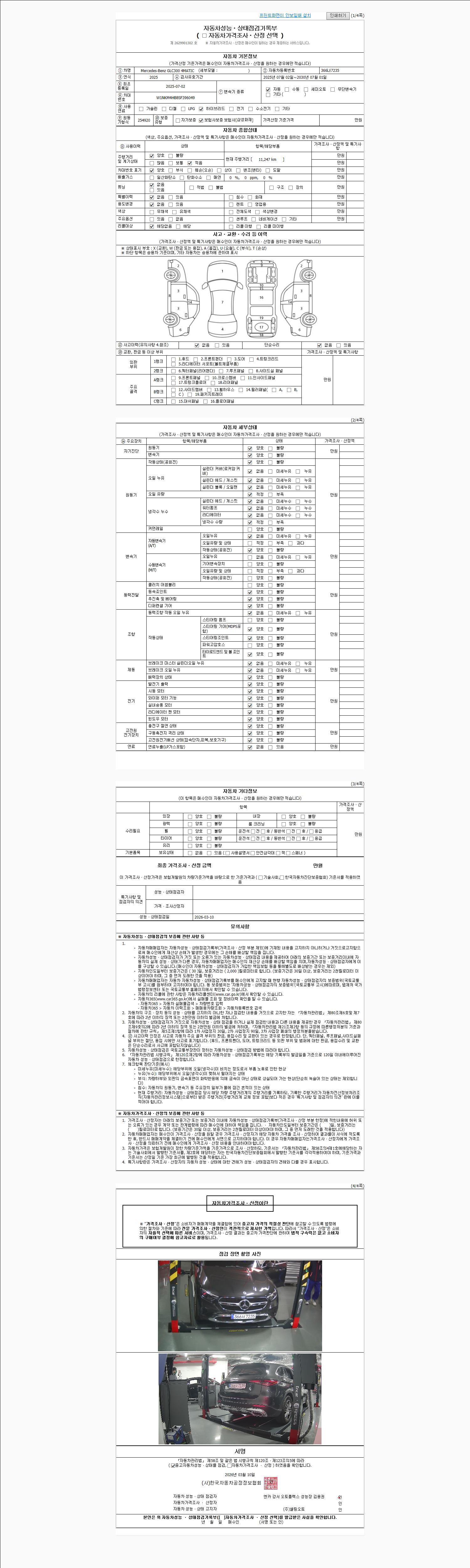 2. 차량 등록증이나 성능점검지 등을 상담자에게 요청및 확인하시고 사전에 미리 점검 하시기를 권유드립니다.