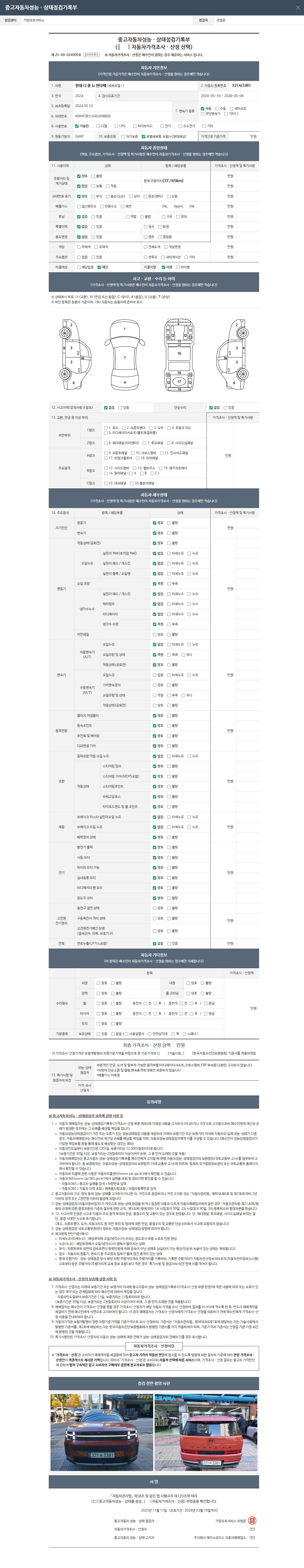 2. 차량 등록증이나 성능점검지 등을 상담자에게 요청및 확인하시고 사전에 미리 점검 하시기를 권유드립니다.