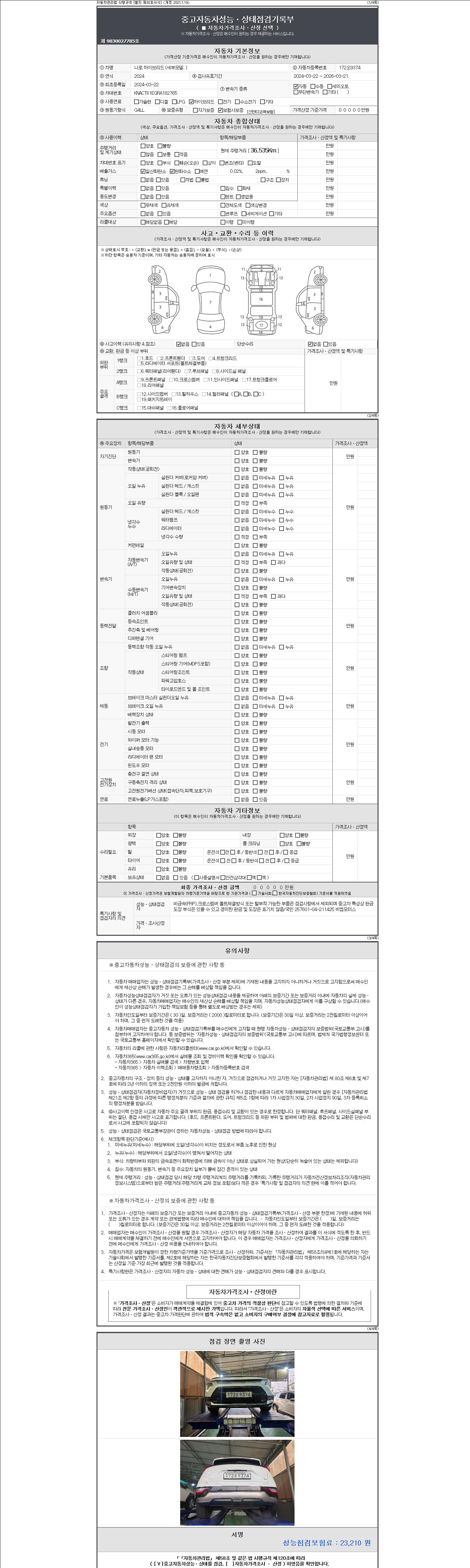오토|휘발유 하이브리드|2024년 3월|36,535 km 172오9374| cc|흰색|무사고 |