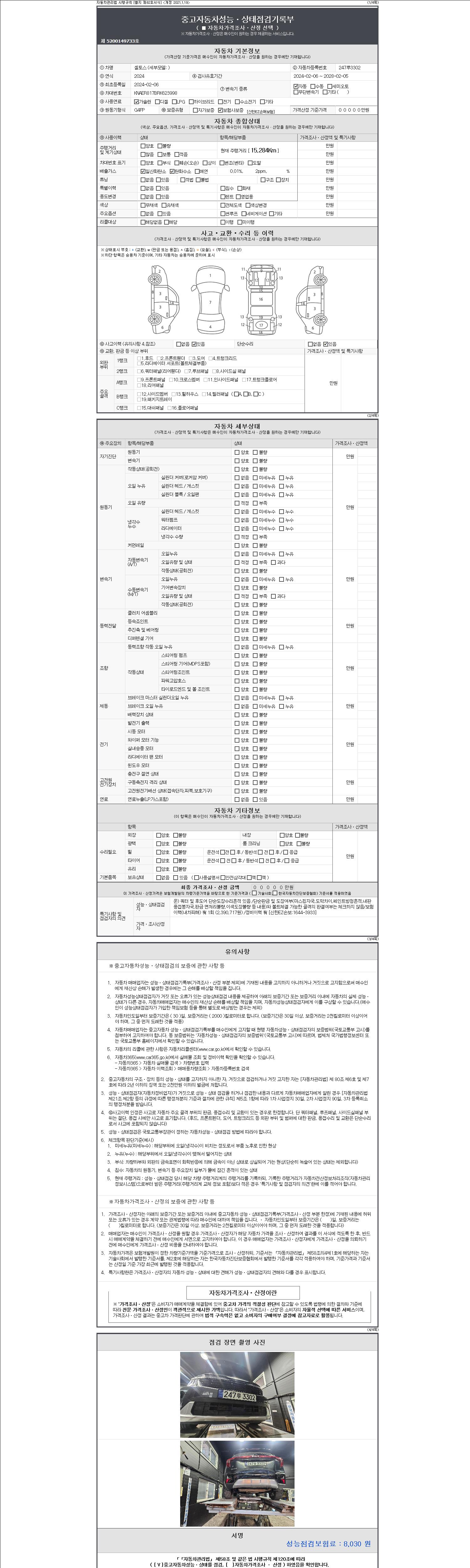| 주행거리 | 15,284 km | 차량번호 | 247루3302 |