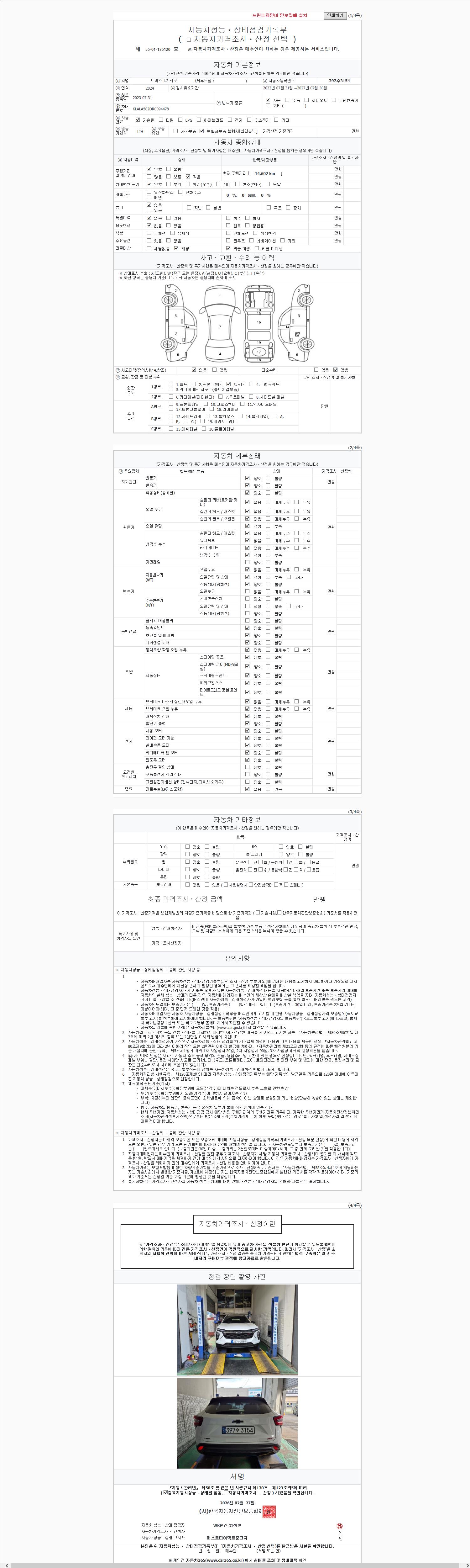 2. 차량 등록증이나 성능점검지 등을 상담자에게 요청및 확인하시고 사전에 미리 점검 하시기를 권유드립니다.