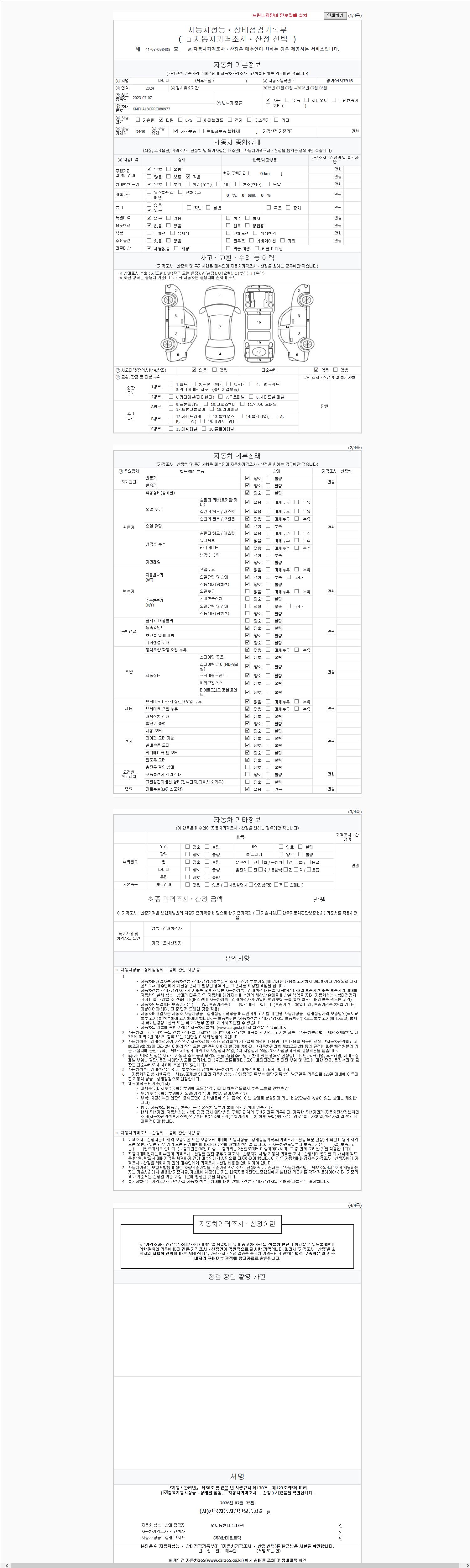 2. 차량 등록증이나 성능점검지 등을 상담자에게 요청및 확인하시고 사전에 미리 점검 하시기를 권유드립니다.