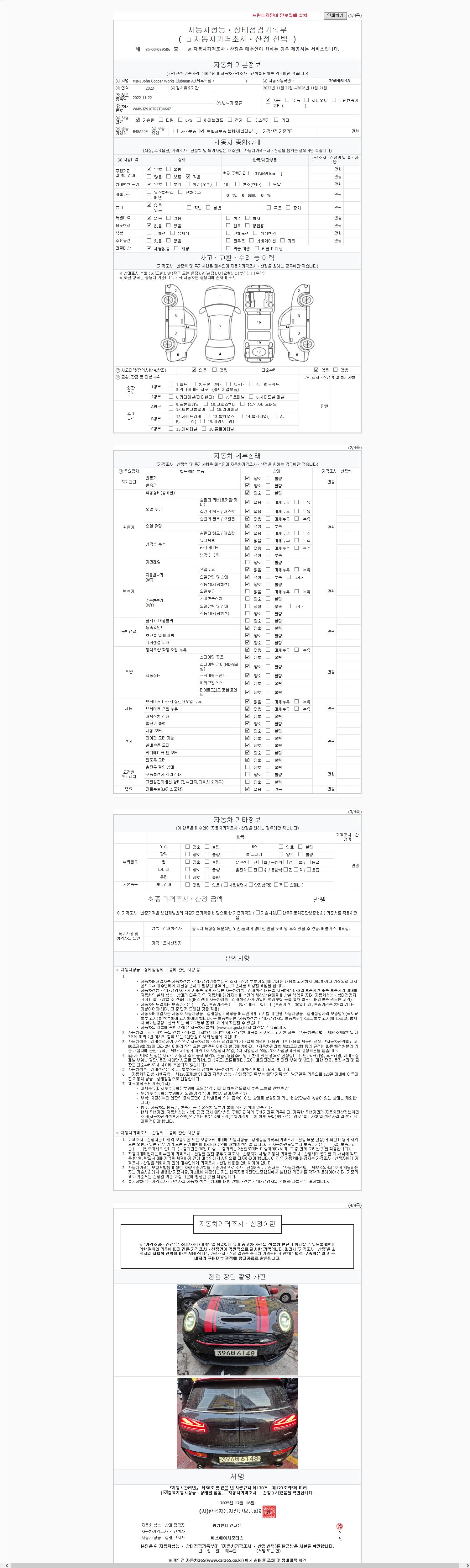 | 주행거리 | 37,669 km | 차량번호 | 396버6148 |