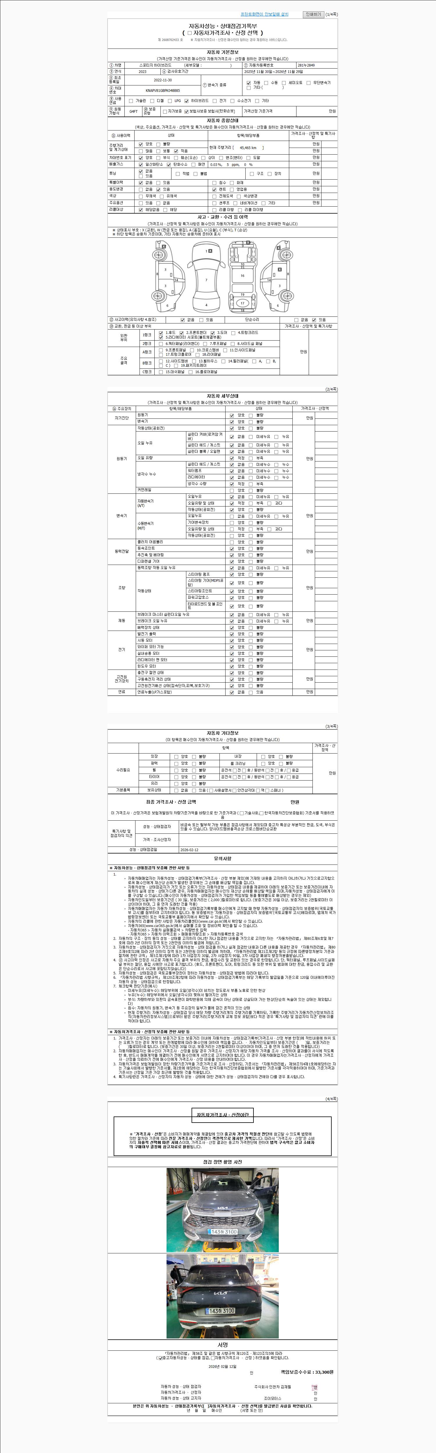 -중고자동차 매매업자를 통해 차량을 구입하실 경우 반드시 "중고자동차 성능, 상태점검 기록부"를 교뷰 받으셔야 하며, 매매업자는 반드시 의무 교부 하여야 압니다.