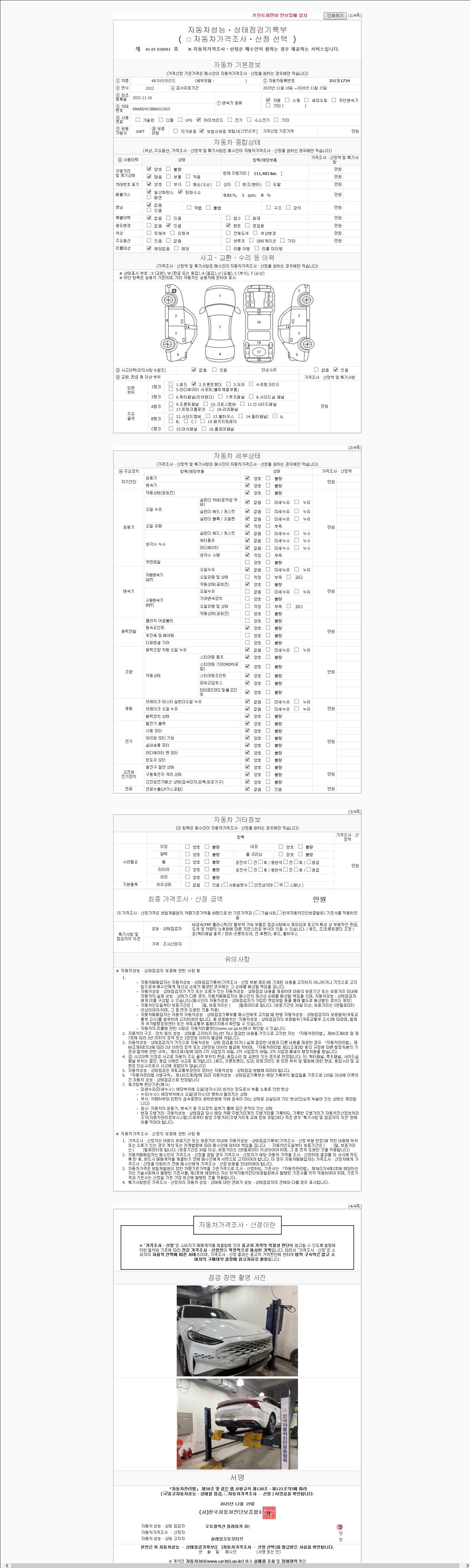 | 사고유무 | 성능기록부 참조 | 제시번호 | 제 20251629457 호 |
