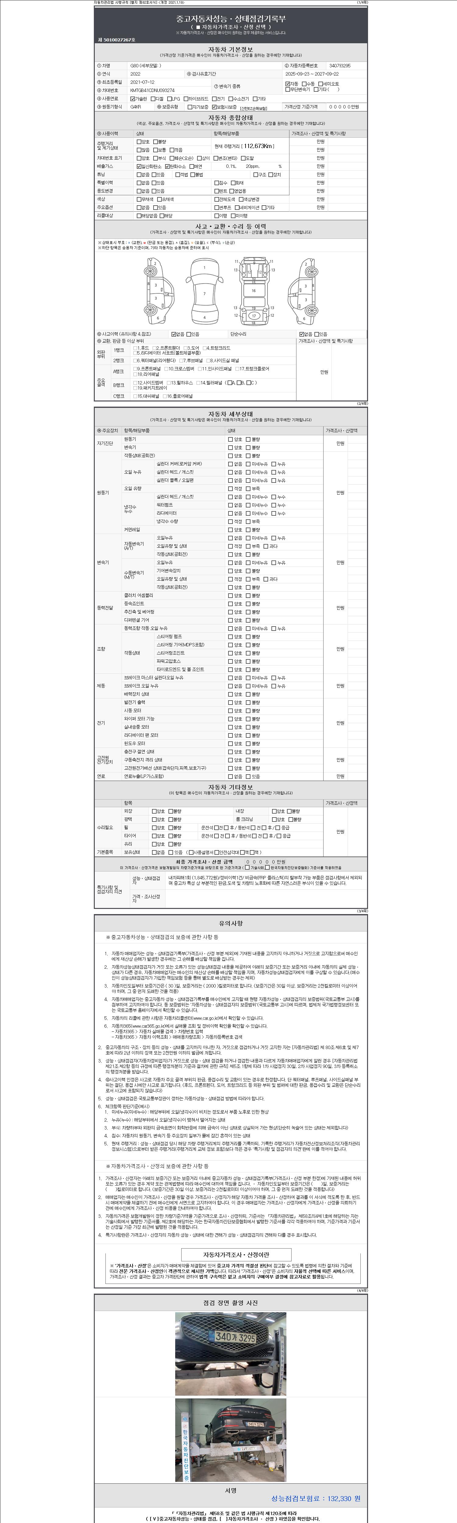 | 주행거리 | 112,673 km | 차량번호 | 340가3295 |