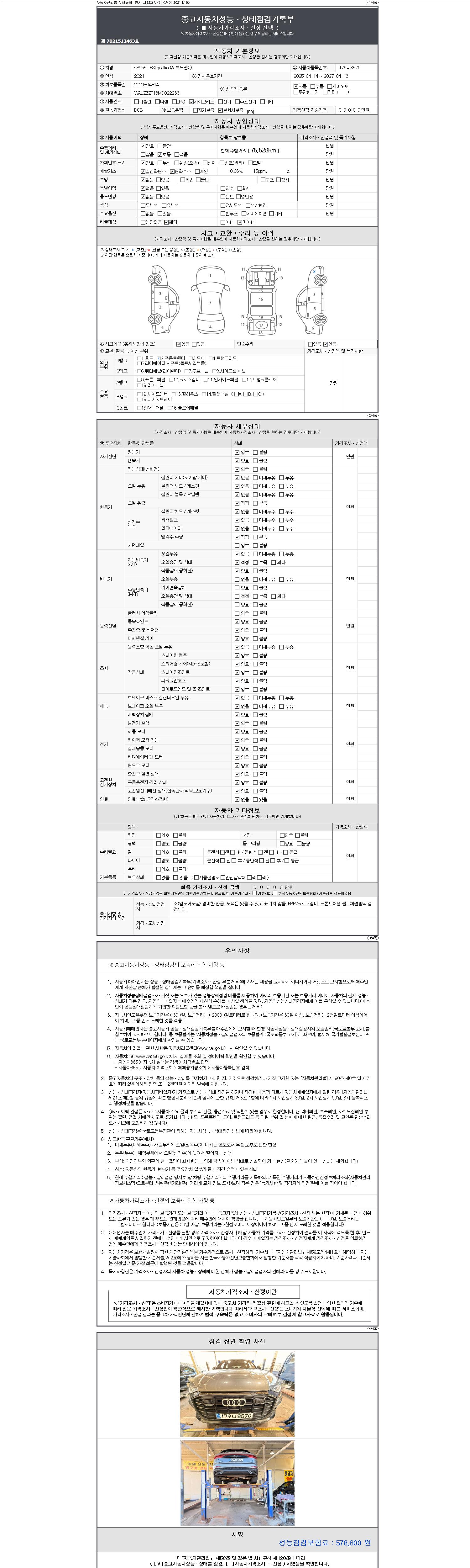 2. 차량 등록증이나 성능점검지 등을 상담자에게 요청및 확인하시고 사전에 미리 점검 하시기를 권유드립니다.