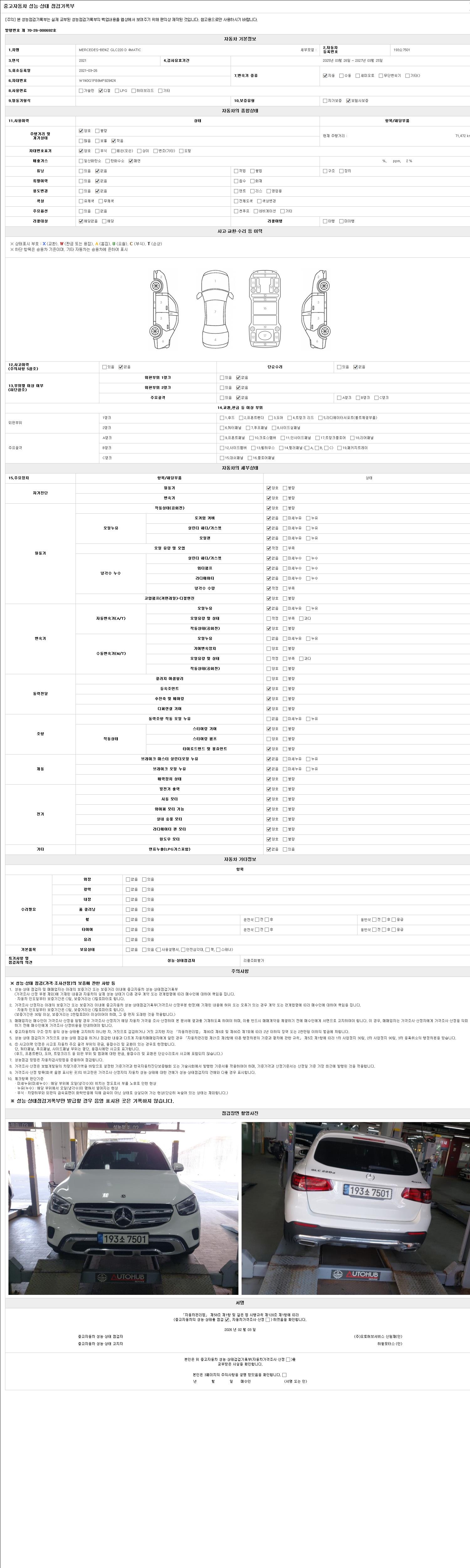 2. 차량 등록증이나 성능점검지 등을 상담자에게 요청및 확인하시고 사전에 미리 점검 하시기를 권유드립니다.