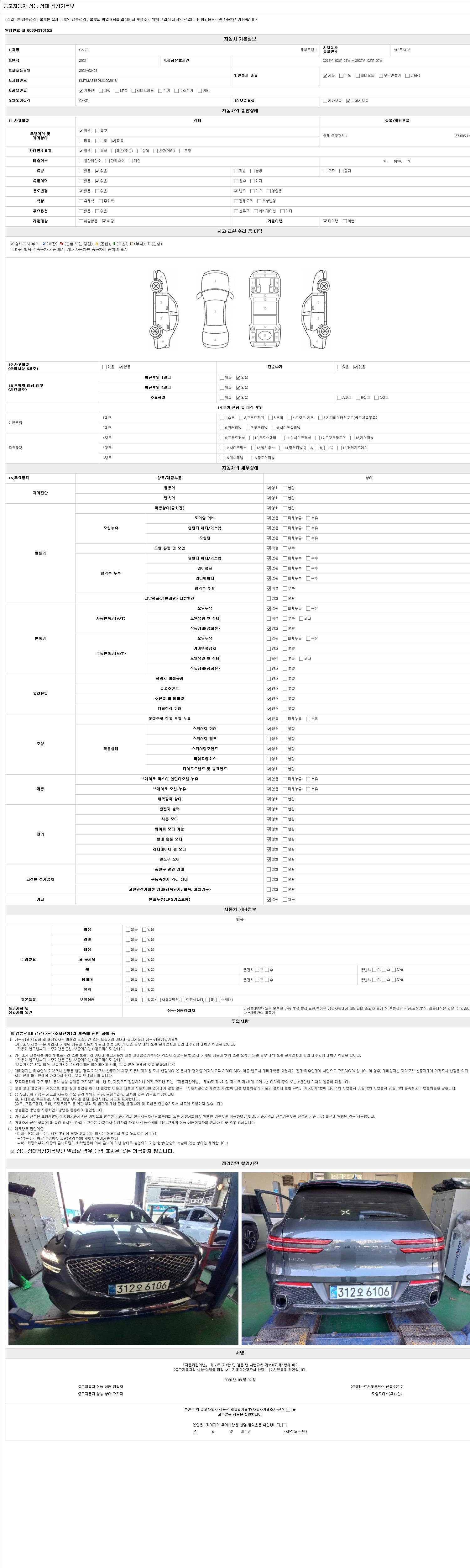 2. 차량 등록증이나 성능점검지 등을 상담자에게 요청및 확인하시고 사전에 미리 점검 하시기를 권유드립니다.