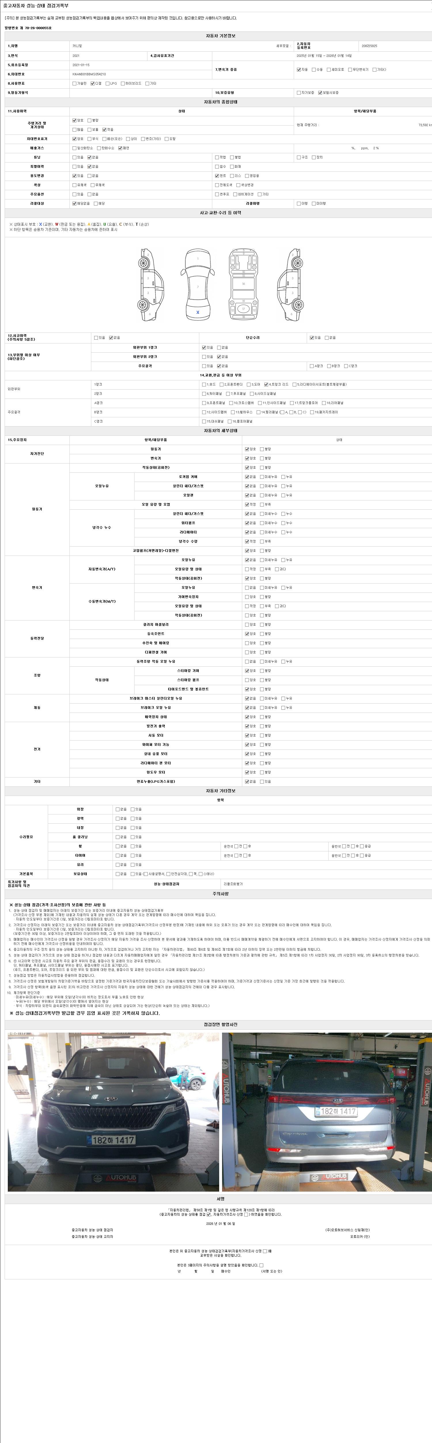 2. 차량 등록증이나 성능점검지 등을 상담자에게 요청및 확인하시고 사전에 미리 점검 하시기를 권유드립니다.