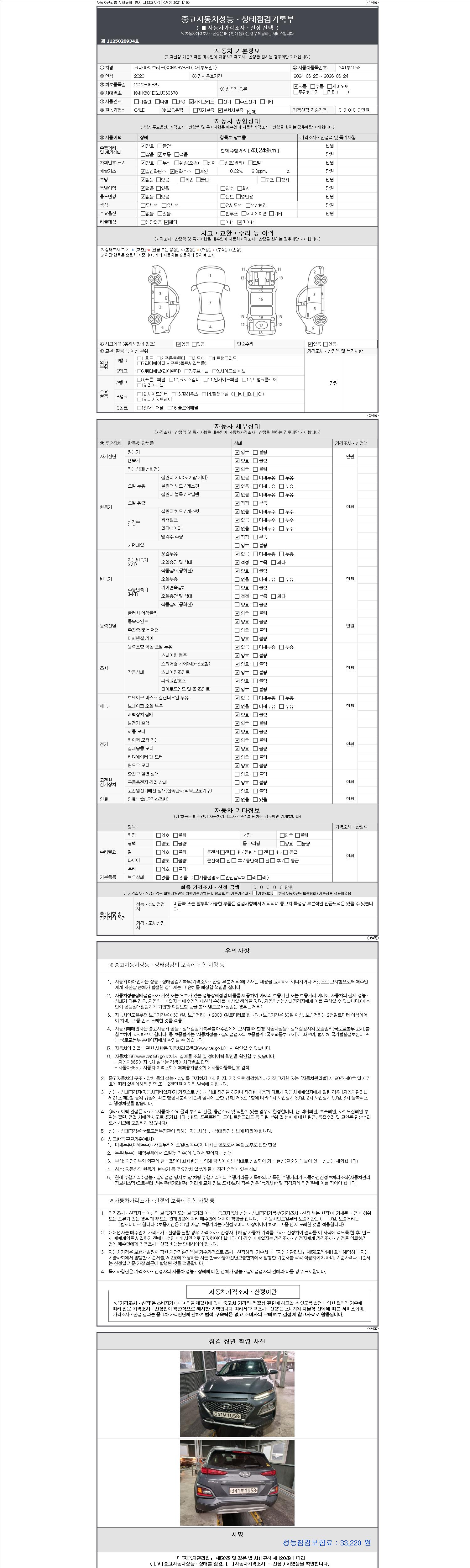 오토|휘발유 하이브리드|2020년 6월|43,249 km 341부1058| cc|회색|무사고 |