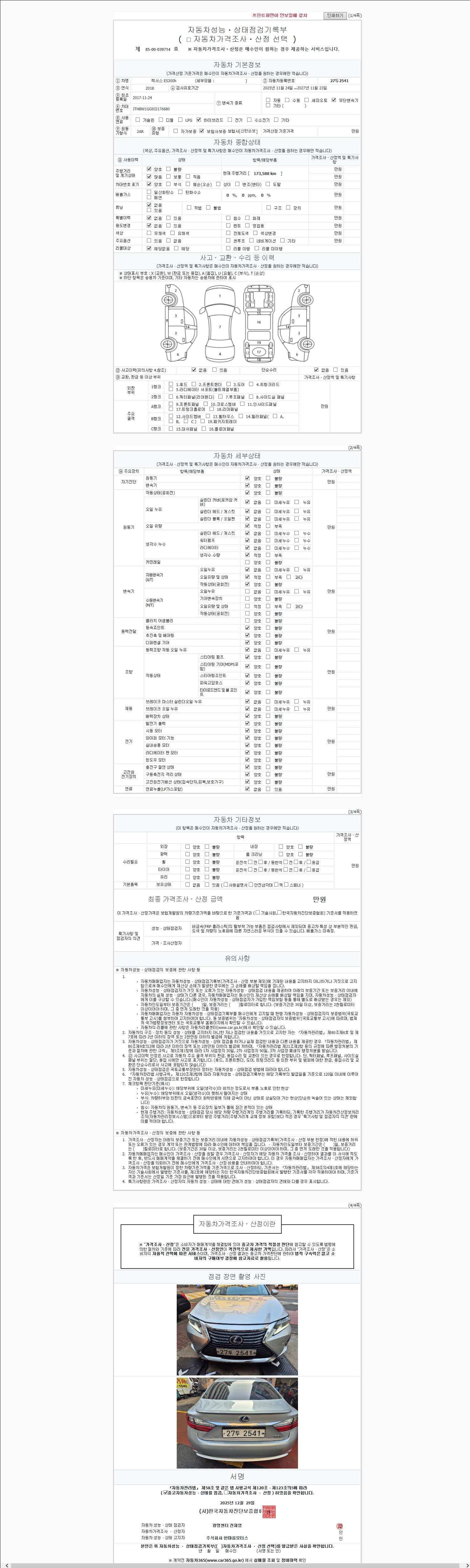| 주행거리 | 173,588 km | 차량번호 | 27두2541 |