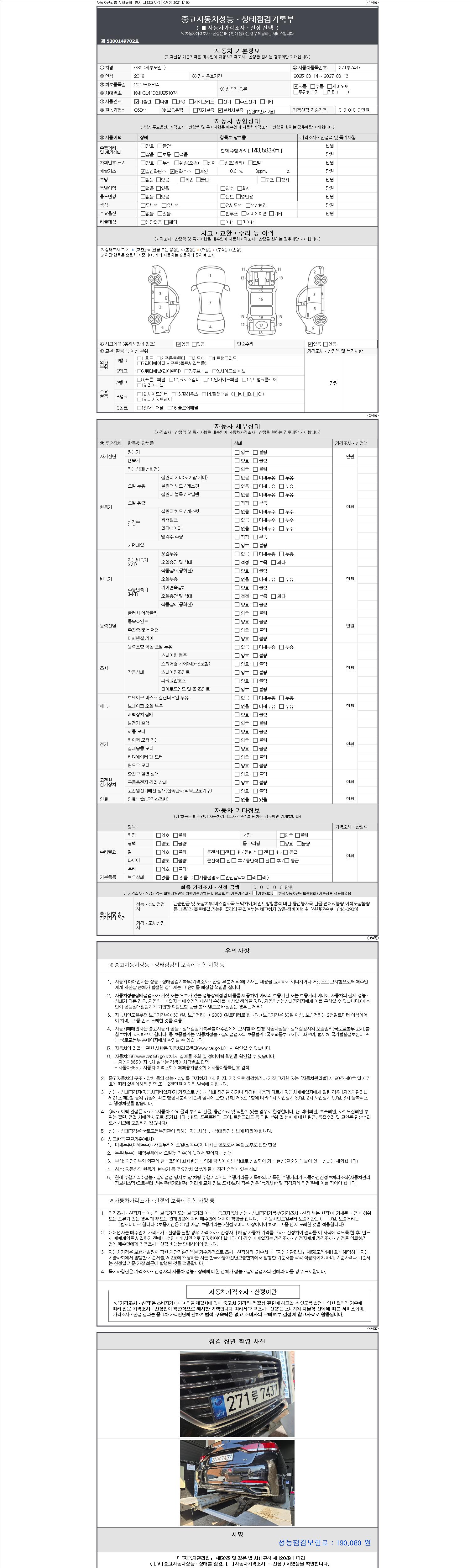 2. 차량 등록증이나 성능점검지 등을 상담자에게 요청및 확인하시고 사전에 미리 점검 하시기를 권유드립니다.