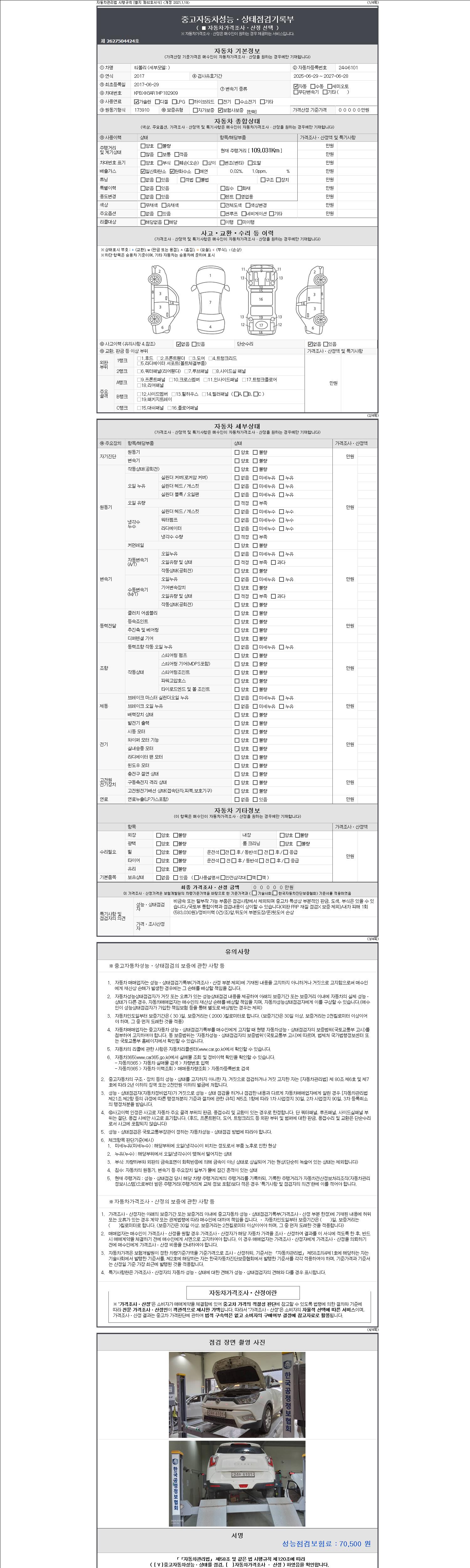 2. 차량 등록증이나 성능점검지 등을 상담자에게 요청및 확인하시고 사전에 미리 점검 하시기를 권유드립니다.