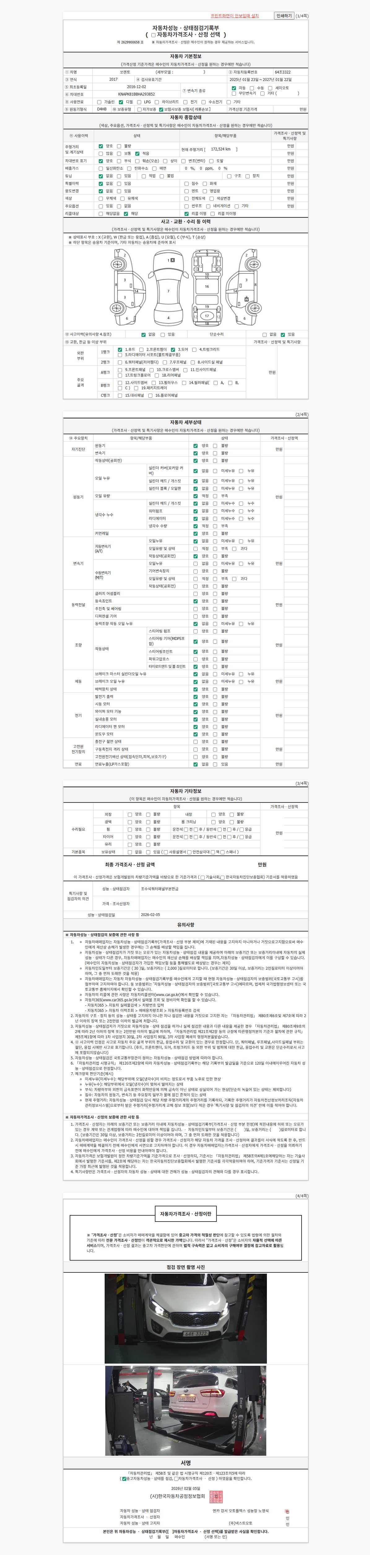 2. 차량 등록증이나 성능점검지 등을 상담자에게 요청및 확인하시고 사전에 미리 점검 하시기를 권유드립니다.