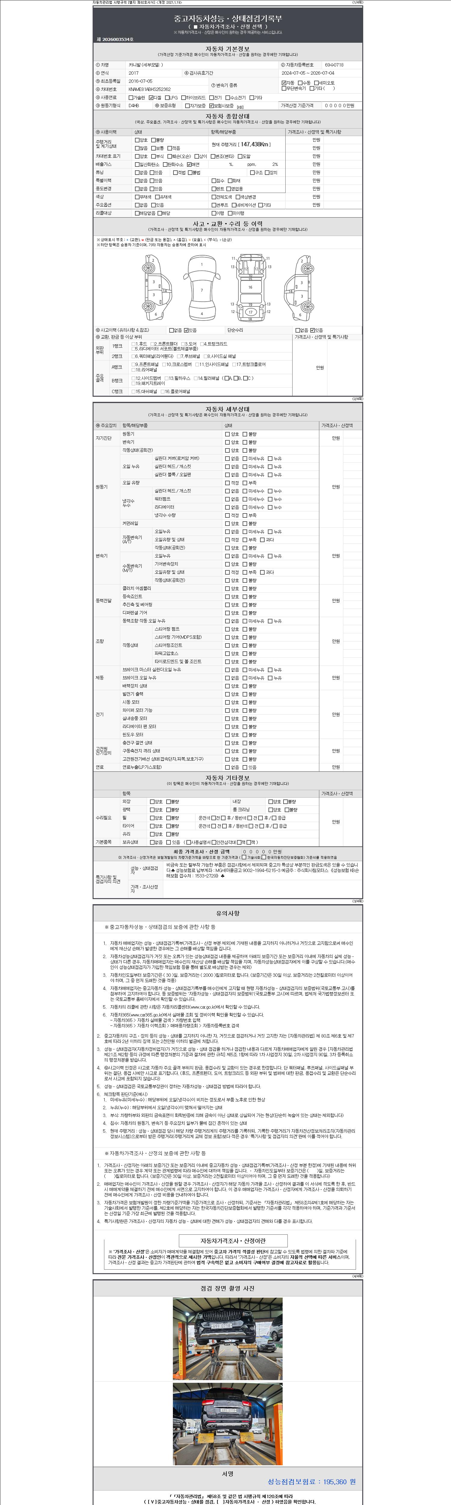 2. 차량 등록증이나 성능점검지 등을 상담자에게 요청및 확인하시고 사전에 미리 점검 하시기를 권유드립니다.