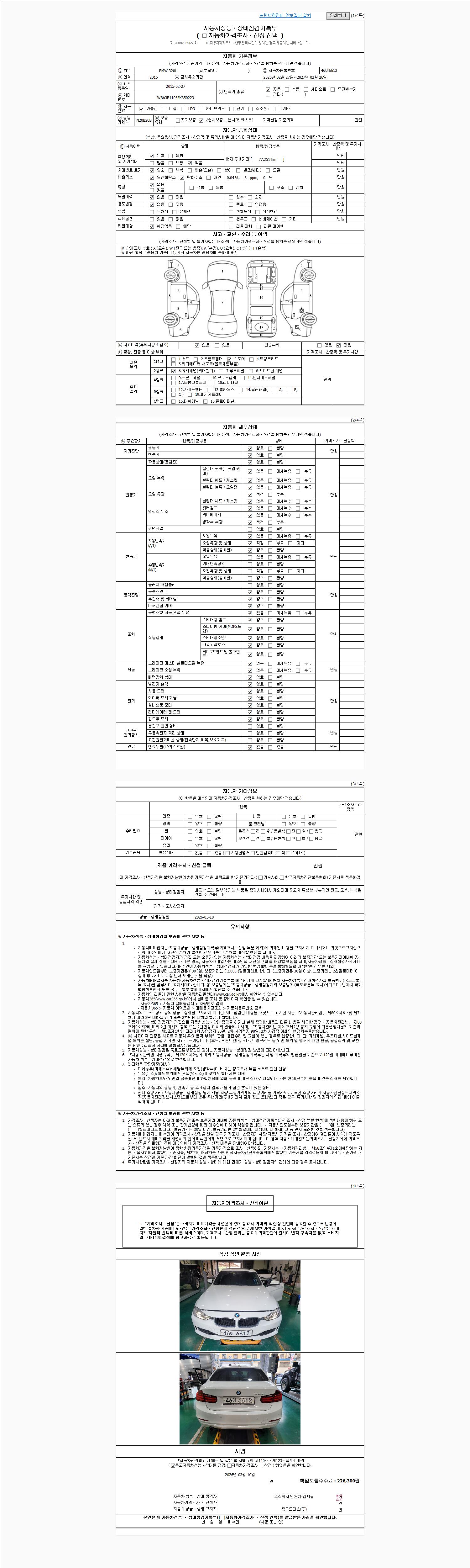 -중고자동차 매매업자를 통해 차량을 구입하실 경우 반드시 "중고자동차 성능, 상태점검 기록부"를 교뷰 받으셔야 하며, 매매업자는 반드시 의무 교부 하여야 압니다.