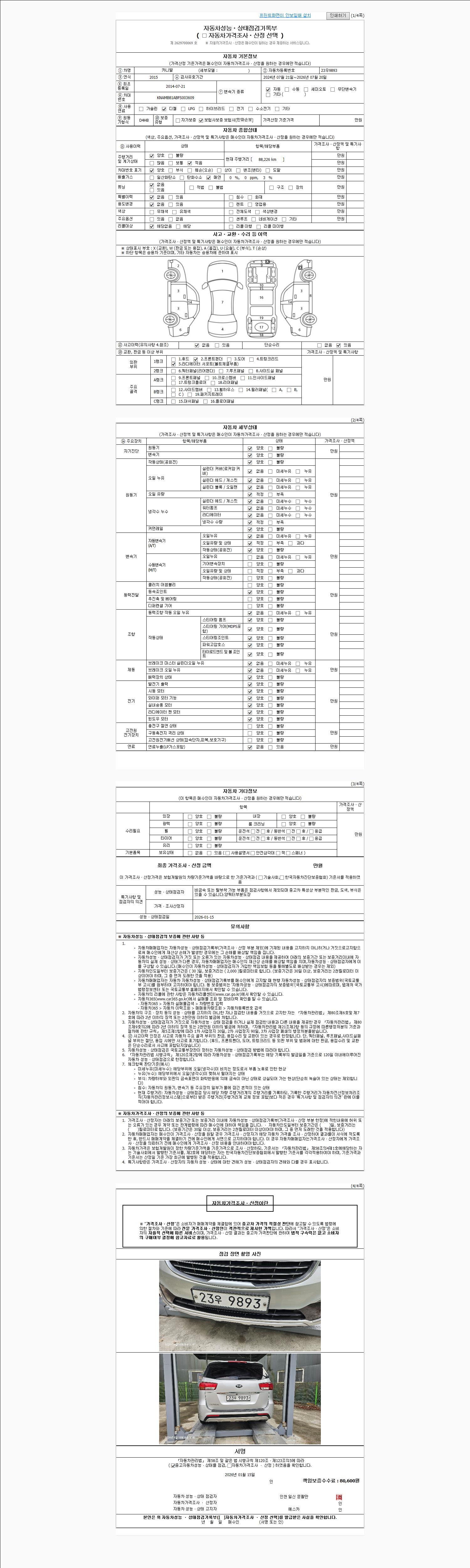 2. 차량 등록증이나 성능점검지 등을 상담자에게 요청및 확인하시고 사전에 미리 점검 하시기를 권유드립니다.