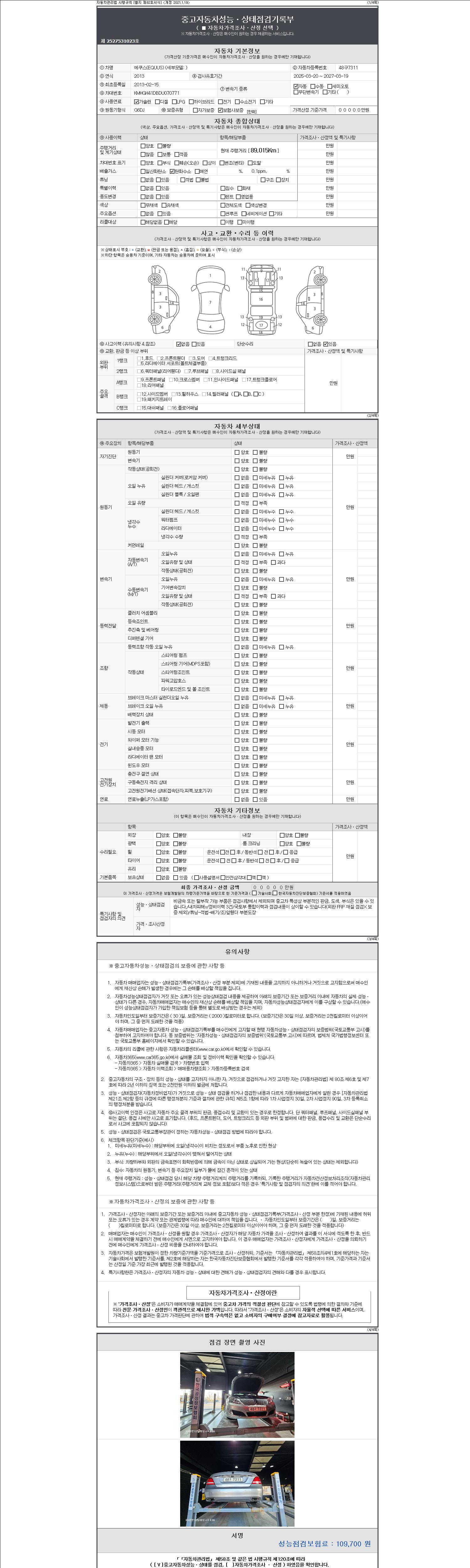2. 차량 등록증이나 성능점검지 등을 상담자에게 요청및 확인하시고 사전에 미리 점검 하시기를 권유드립니다.