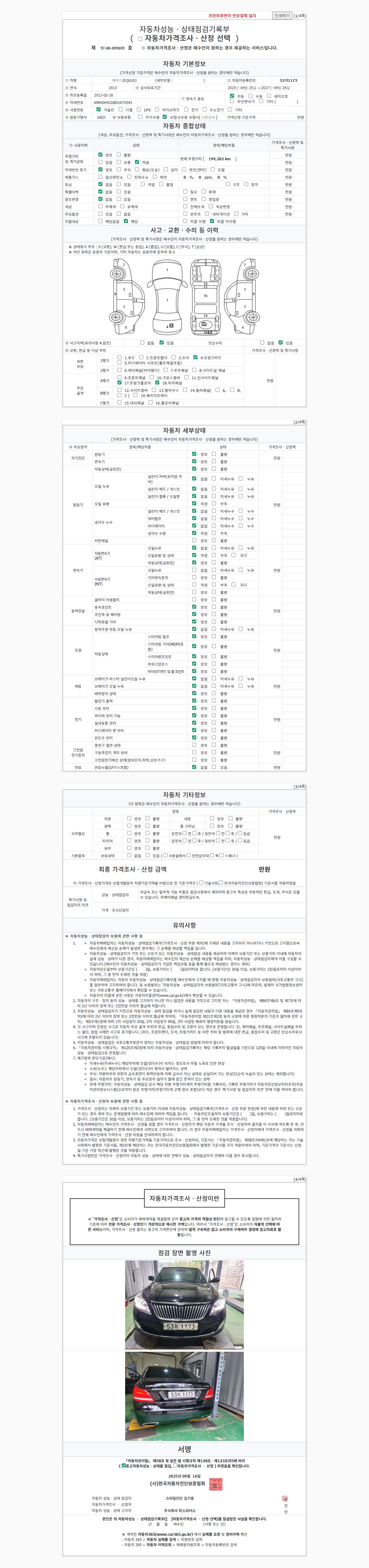 2. 차량 등록증이나 성능점검지 등을 상담자에게 요청및 확인하시고 사전에 미리 점검 하시기를 권유드립니다.