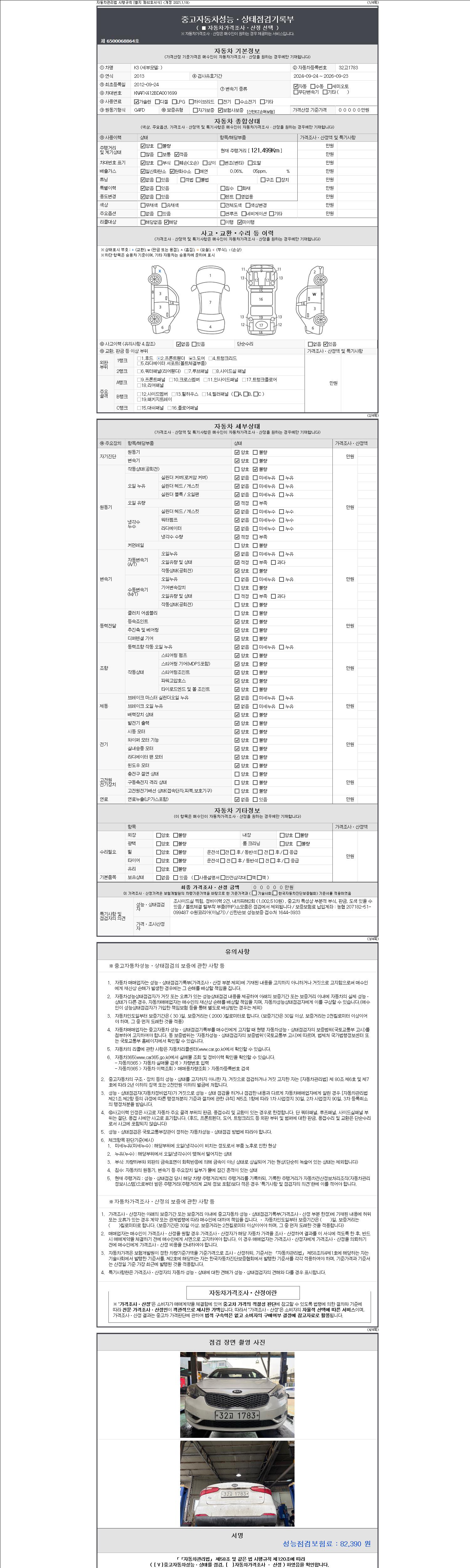 | 주행거리 | 121,499 km | 차량번호 | 32고1783 |