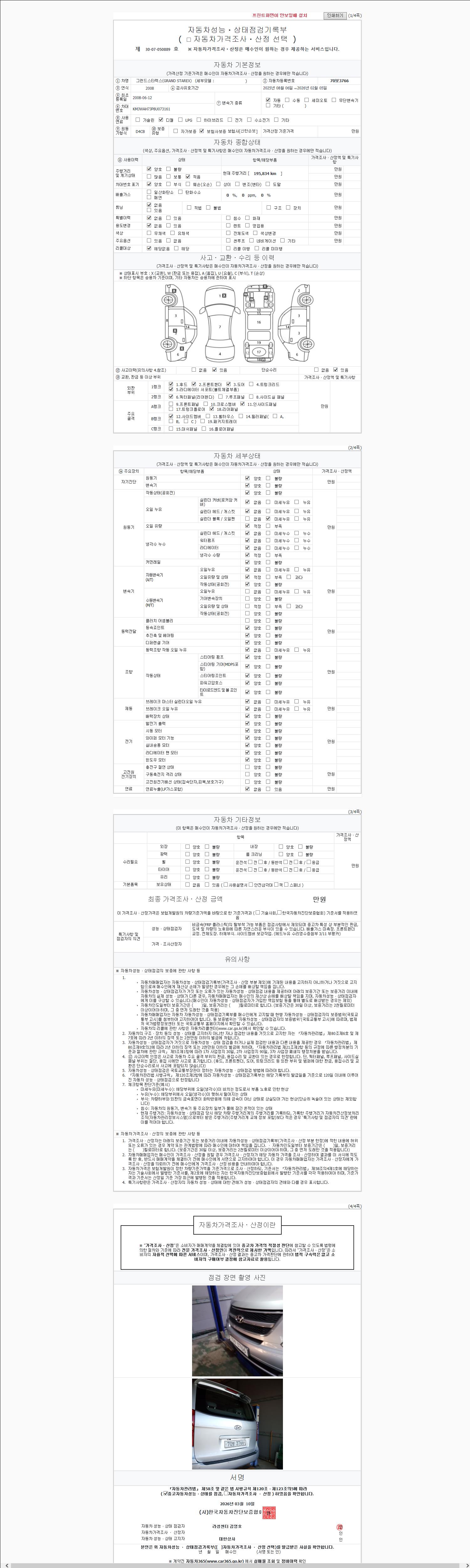 2. 차량 등록증이나 성능점검지 등을 상담자에게 요청및 확인하시고 사전에 미리 점검 하시기를 권유드립니다.