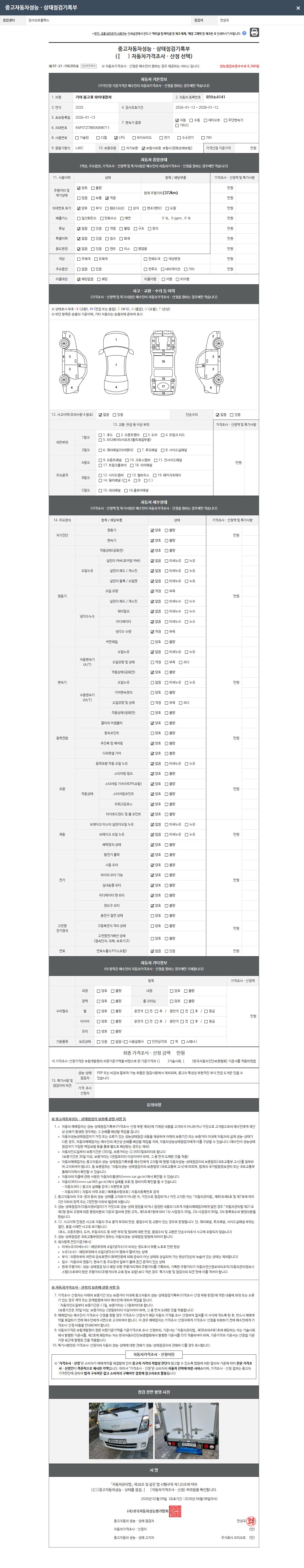 2. 차량 등록증이나 성능점검지 등을 상담자에게 요청및 확인하시고 사전에 미리 점검 하시기를 권유드립니다.