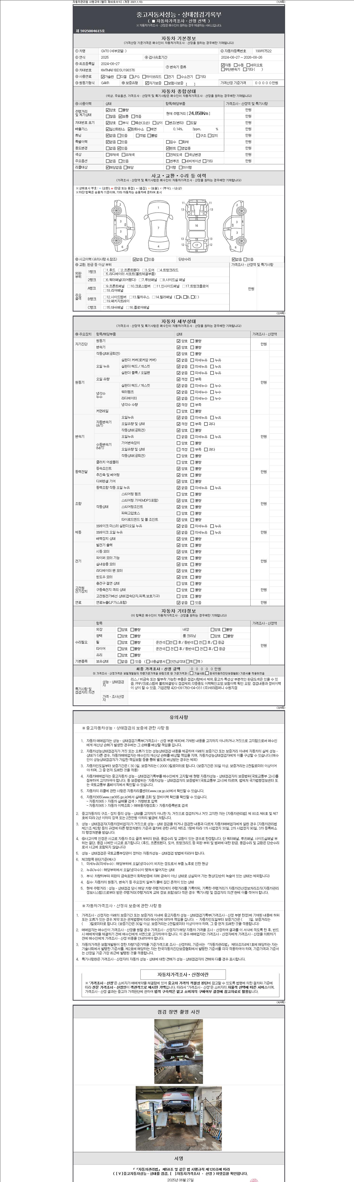 2. 차량 등록증이나 성능점검지 등을 상담자에게 요청및 확인하시고 사전에 미리 점검 하시기를 권유드립니다.
