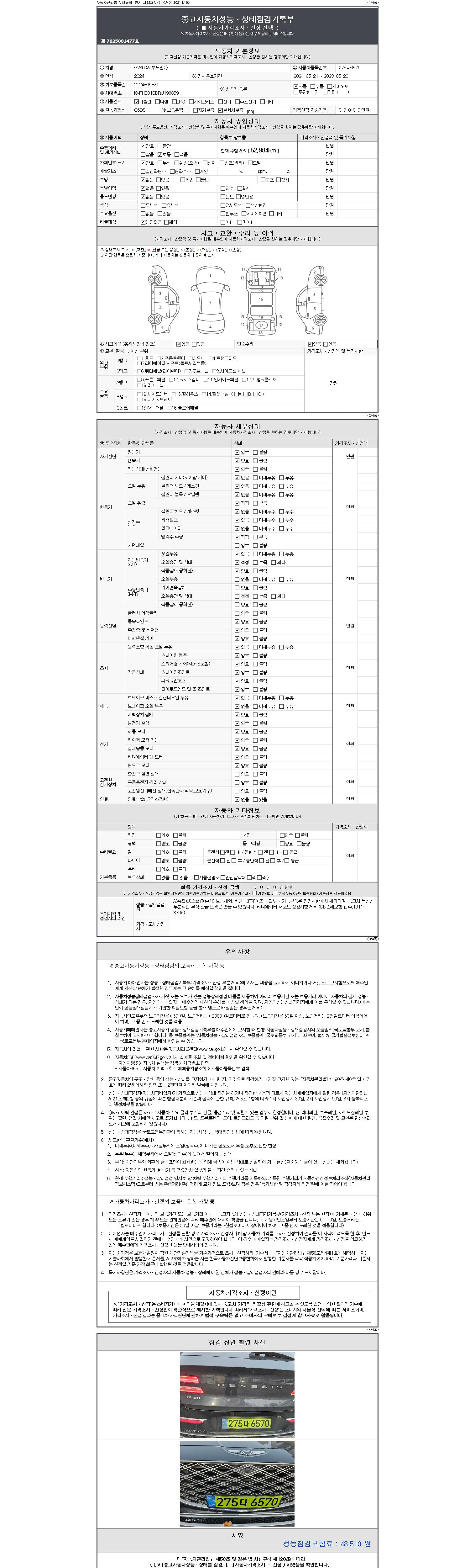 | 주행거리 | 52,984 km | 차량번호 | 275다6570 |