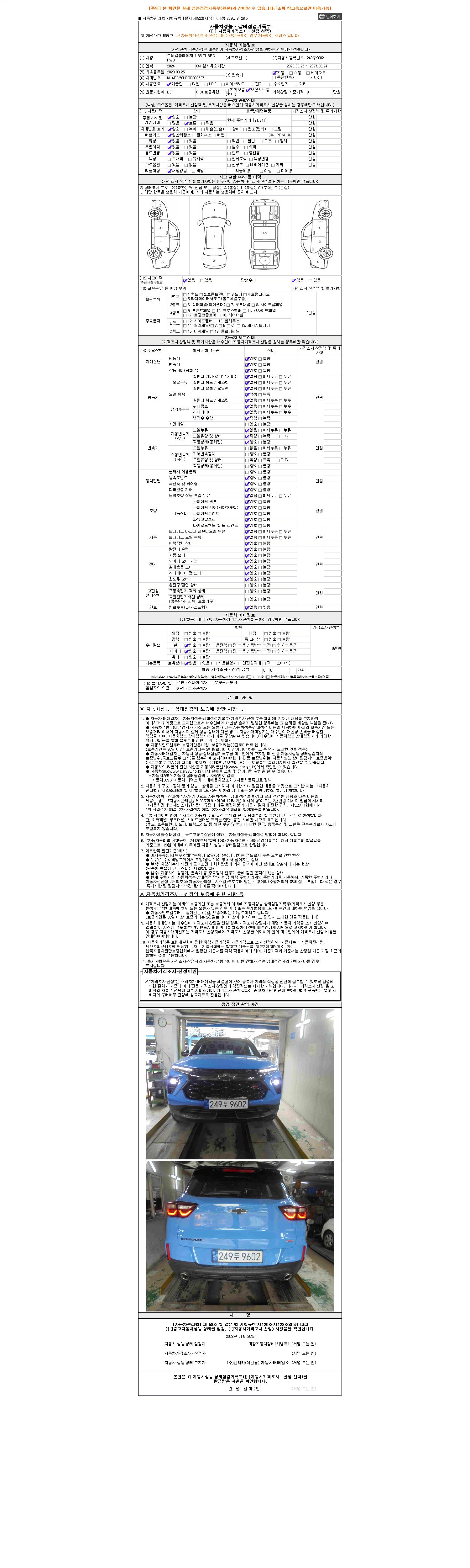 2. 차량 등록증이나 성능점검지 등을 상담자에게 요청및 확인하시고 사전에 미리 점검 하시기를 권유드립니다.