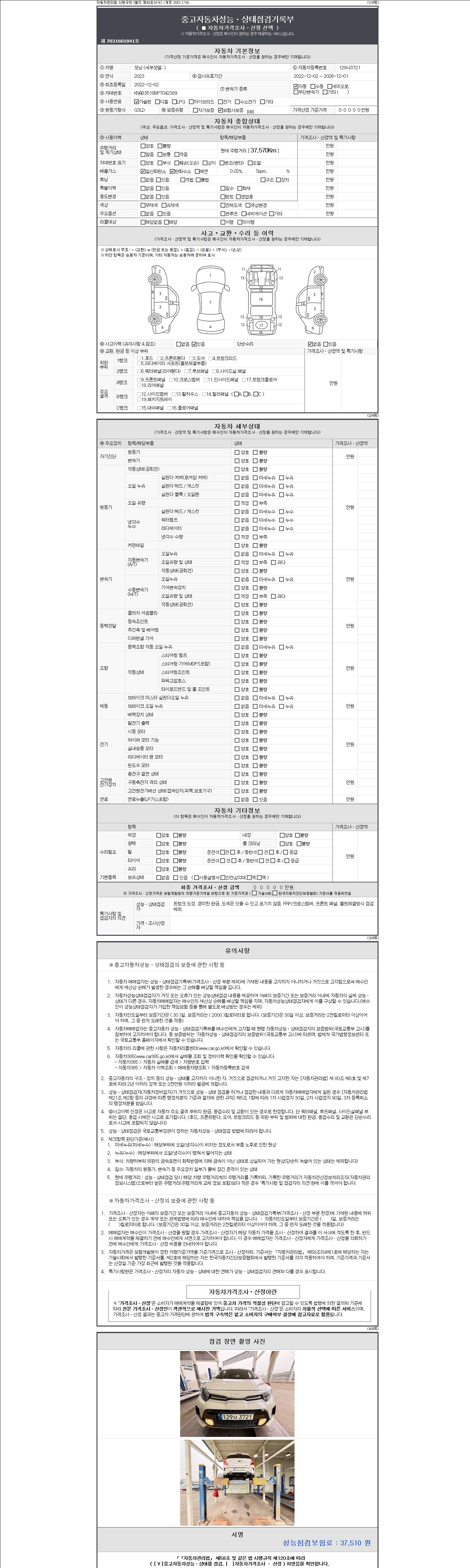 | 주행거리 | 37,553 km | 차량번호 | 129나3721 |