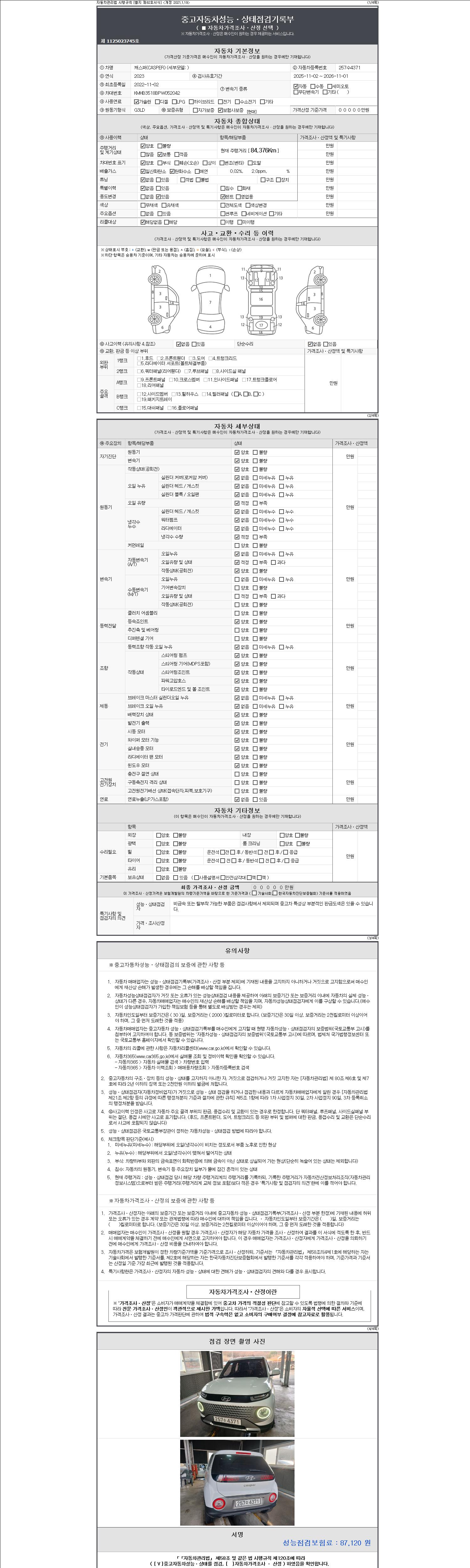 | 사고유무 | 성능기록부 참조 | 제시번호 | 제 20261104198 호 |
