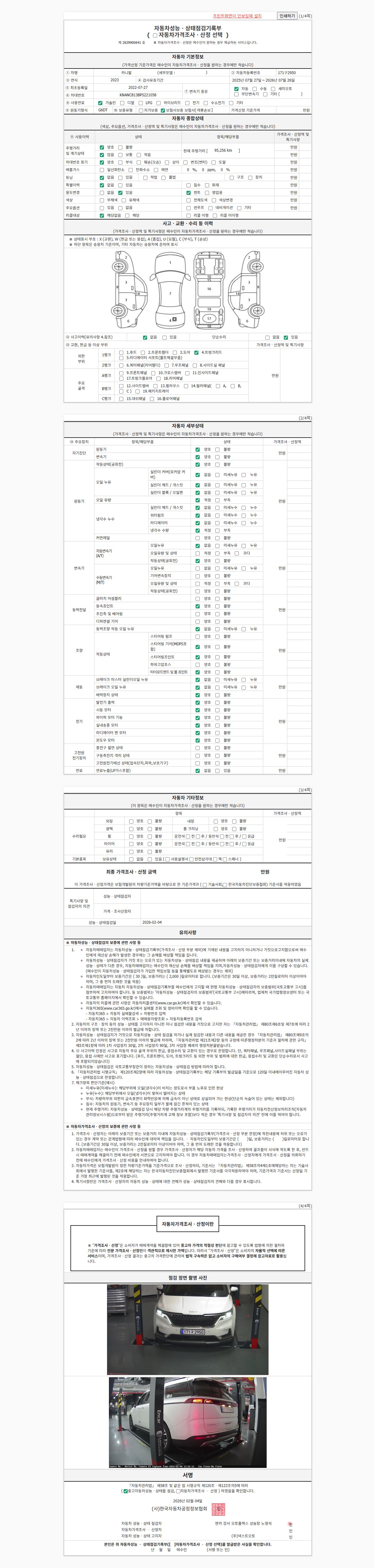 2. 차량 등록증이나 성능점검지 등을 상담자에게 요청및 확인하시고 사전에 미리 점검 하시기를 권유드립니다.