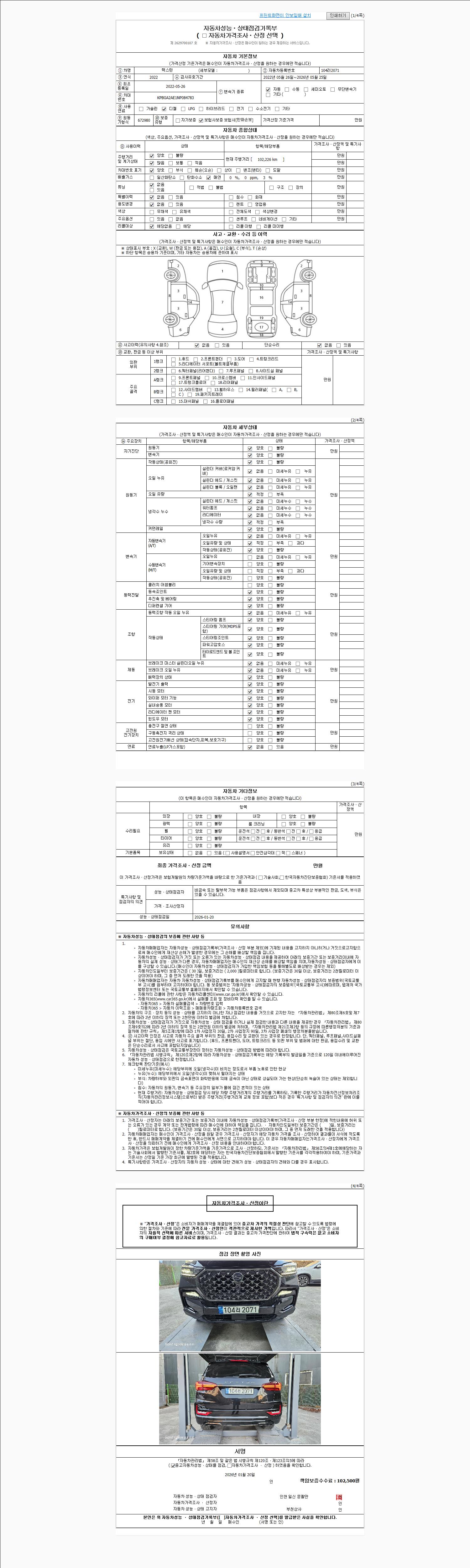 | 주행거리 | 102,226 km | 차량번호 | 104러2071 |
