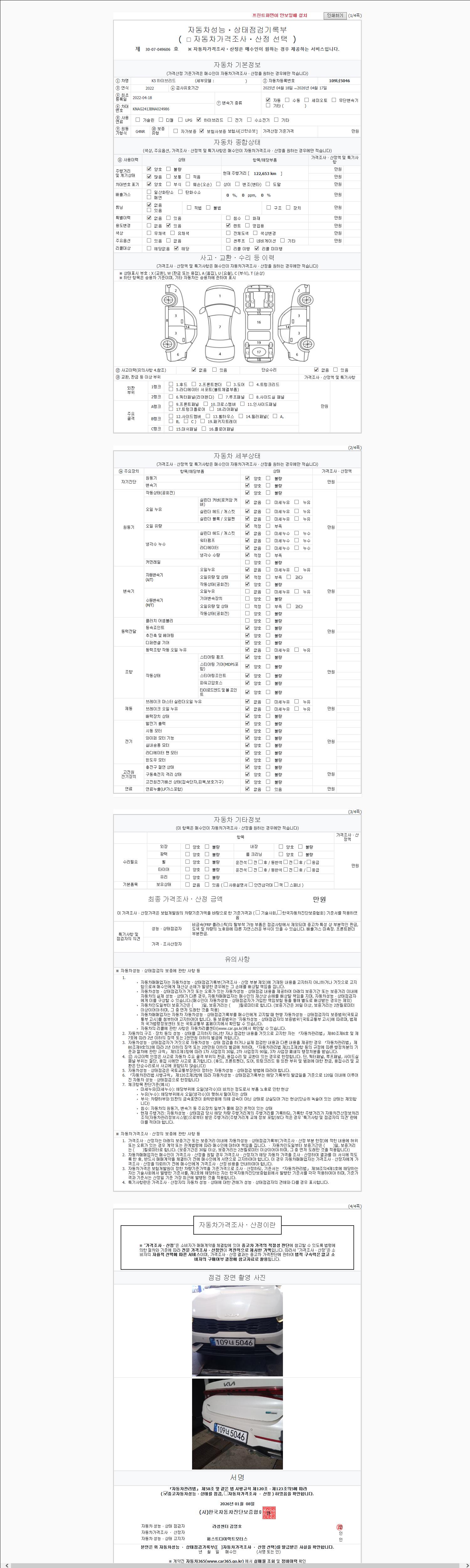 | 주행거리 | 122,652 km | 차량번호 | 109너5046 |
