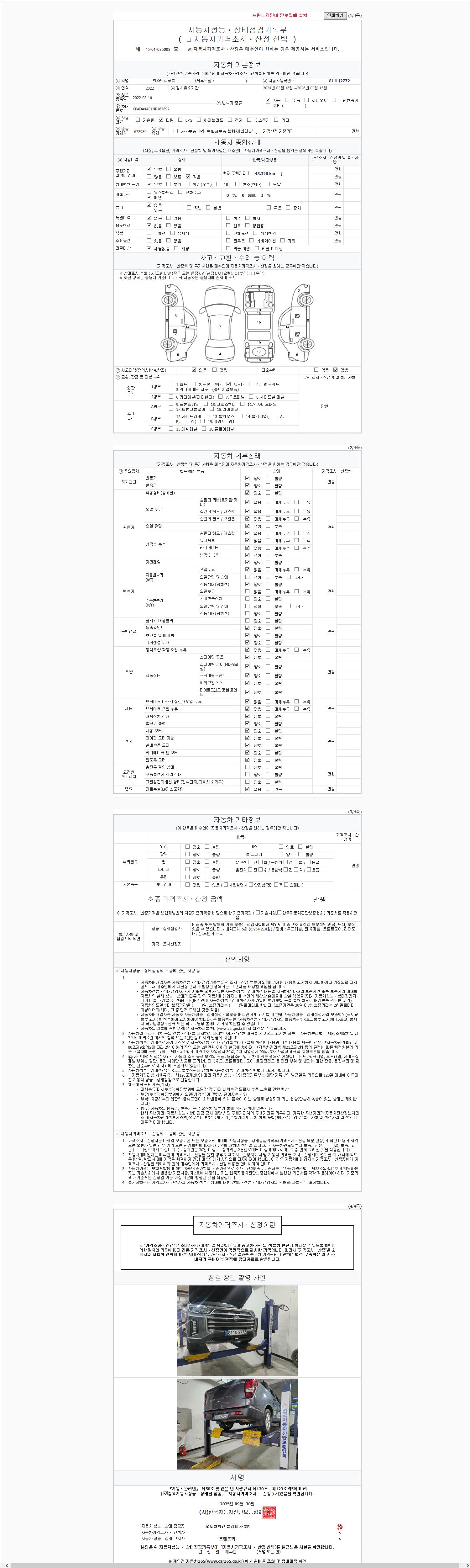 2. 차량 등록증이나 성능점검지 등을 상담자에게 요청및 확인하시고 사전에 미리 점검 하시기를 권유드립니다.