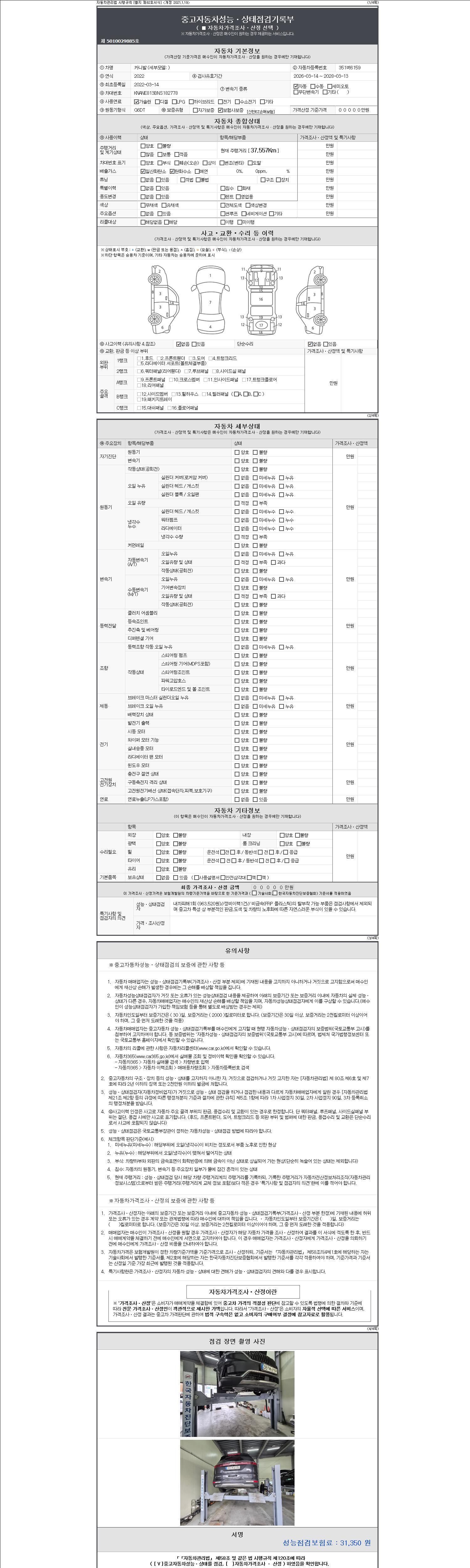 사고유무 성능기록부 참조 제시번호 제 20261134512 호