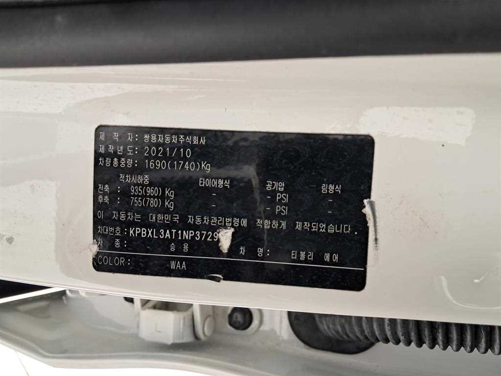 KG모빌리티(쌍용) 티볼리 티볼리 에어 (16~23년) 2WD 가솔린 1.5 A3 |