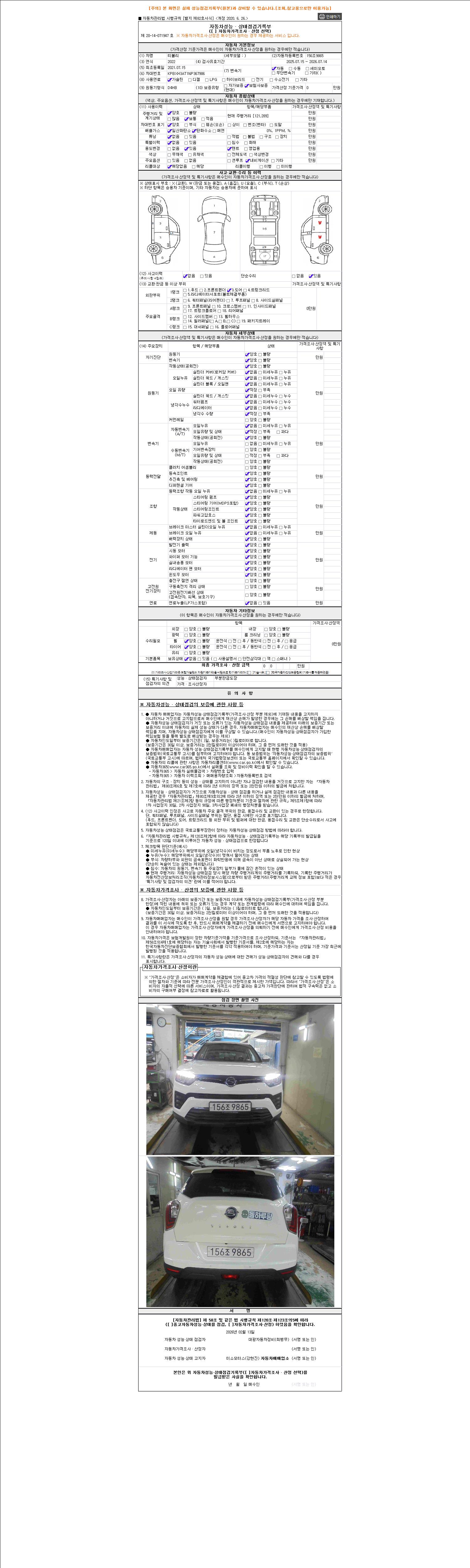 2. 차량 등록증이나 성능점검지 등을 상담자에게 요청및 확인하시고 사전에 미리 점검 하시기를 권유드립니다.