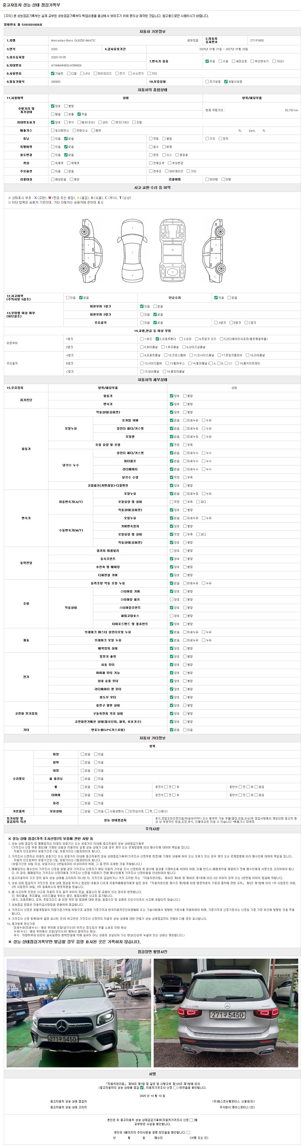 | 사고유무 | 성능기록부 참조 | 제시번호 | 제 2025033015 호 |