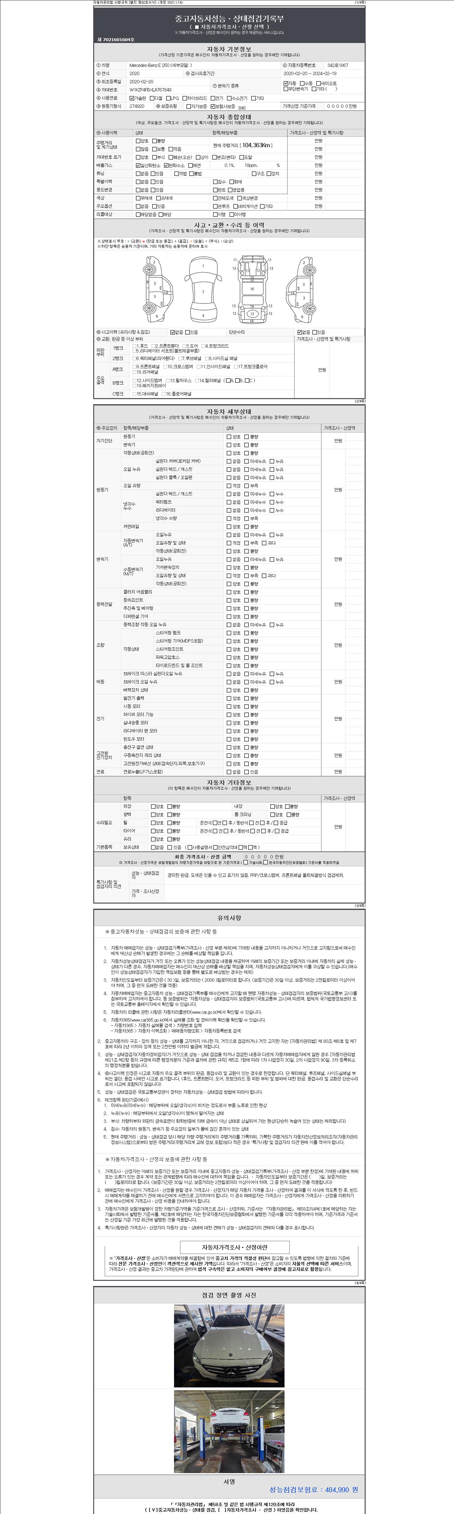 -중고자동차 매매업자를 통해 차량을 구입하실 경우 반드시 "중고자동차 성능, 상태점검 기록부"를 교뷰 받으셔야 하며, 매매업자는 반드시 의무 교부 하여야 압니다.