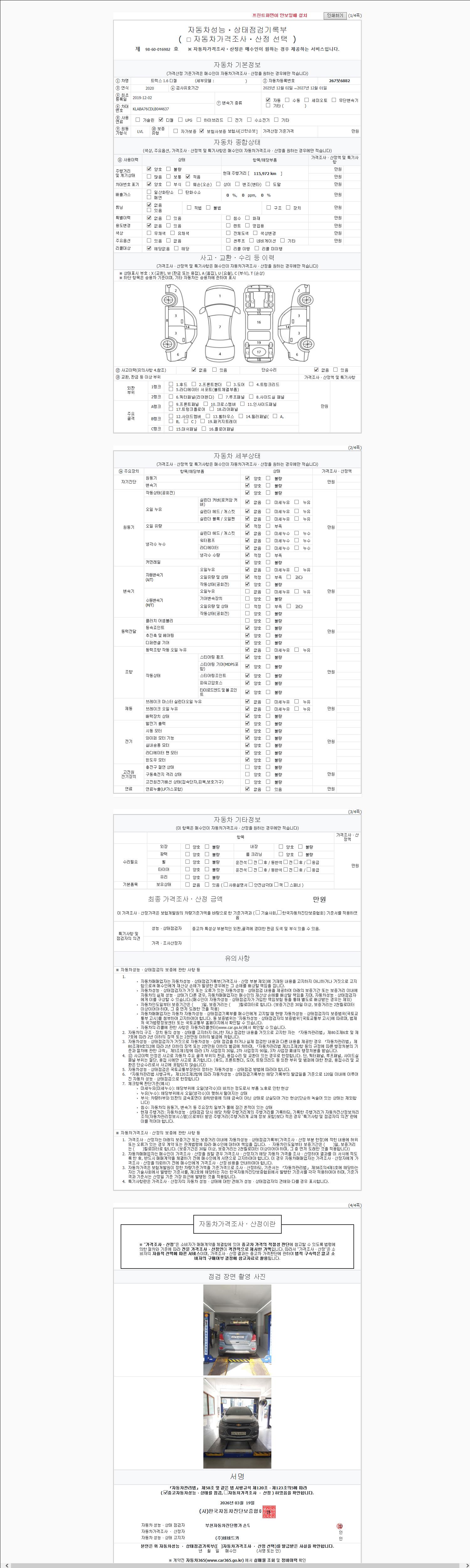 2. 차량 등록증이나 성능점검지 등을 상담자에게 요청및 확인하시고 사전에 미리 점검 하시기를 권유드립니다.