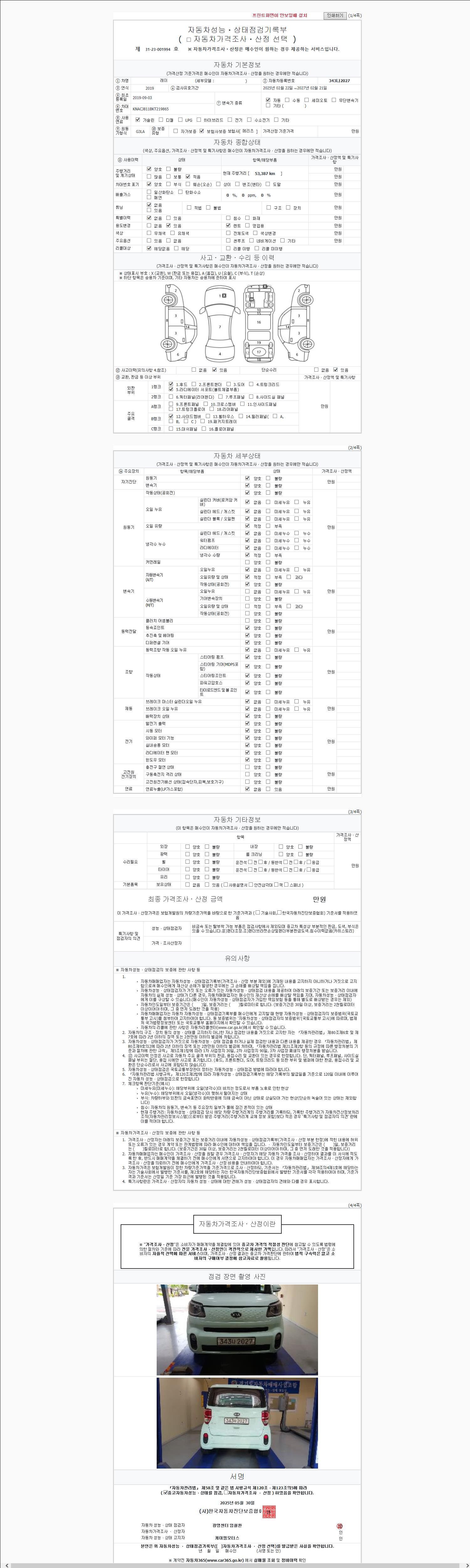 | 주행거리 | 53,386 km | 차량번호 | 343나2027 |