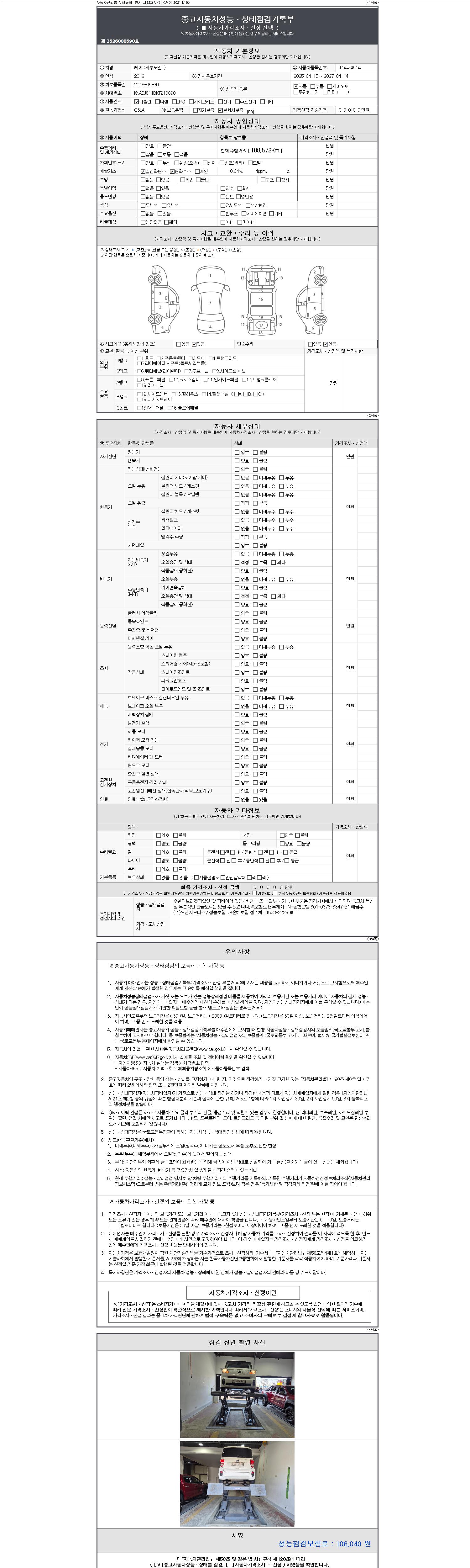 2. 차량 등록증이나 성능점검지 등을 상담자에게 요청및 확인하시고 사전에 미리 점검 하시기를 권유드립니다.