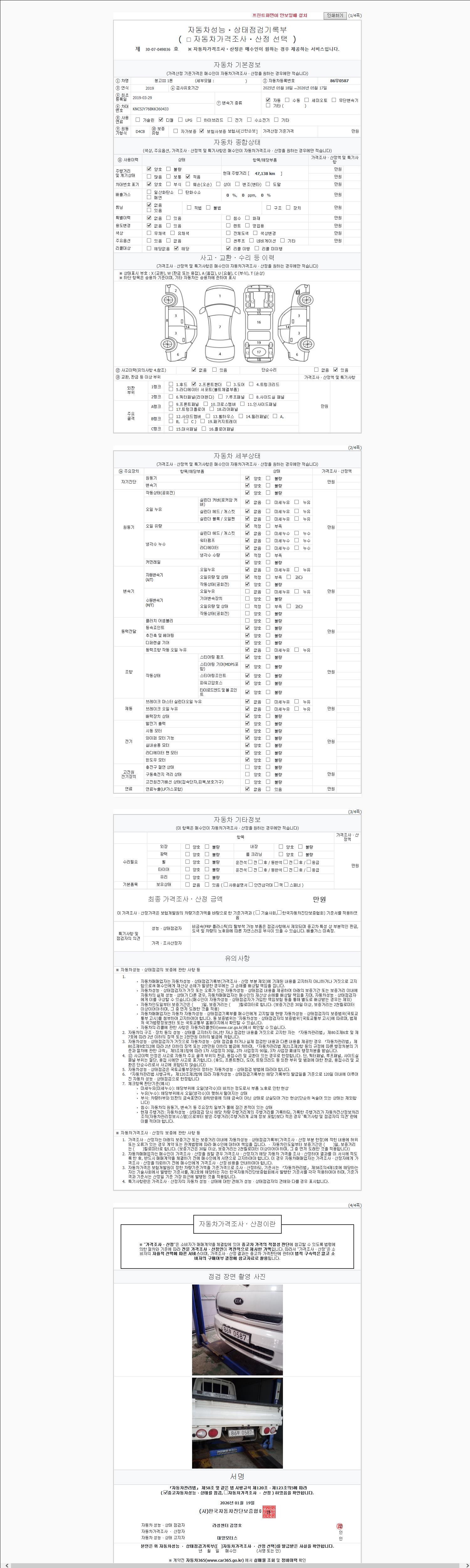 | 주행거리 | 47,138 km | 차량번호 | 86무0587 |