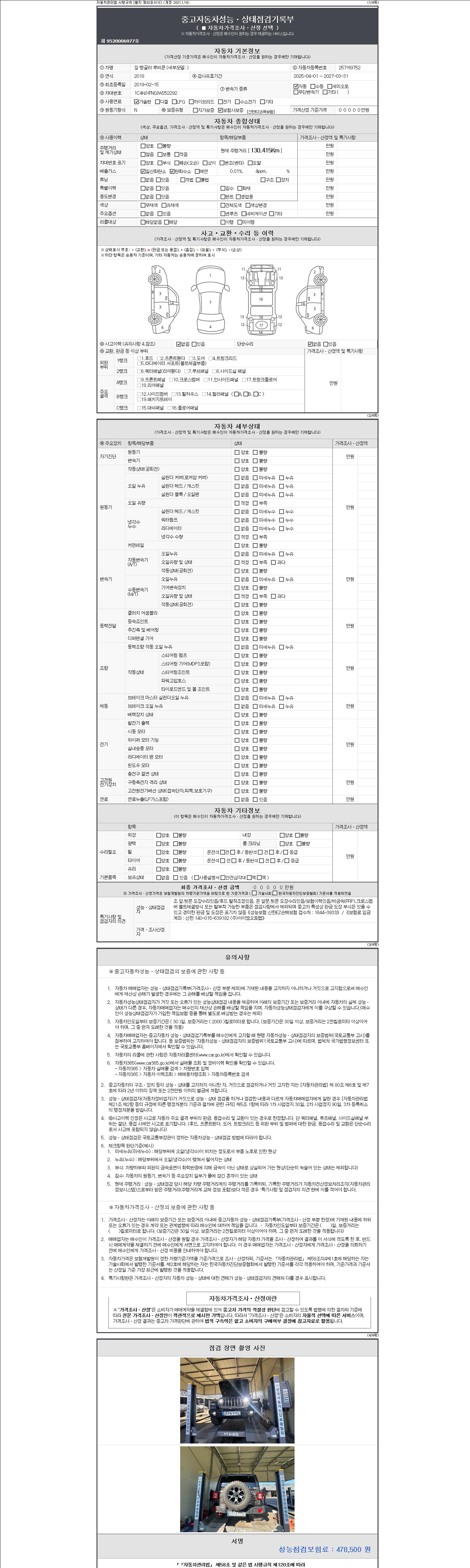 2. 차량 등록증이나 성능점검지 등을 상담자에게 요청및 확인하시고 사전에 미리 점검 하시기를 권유드립니다.