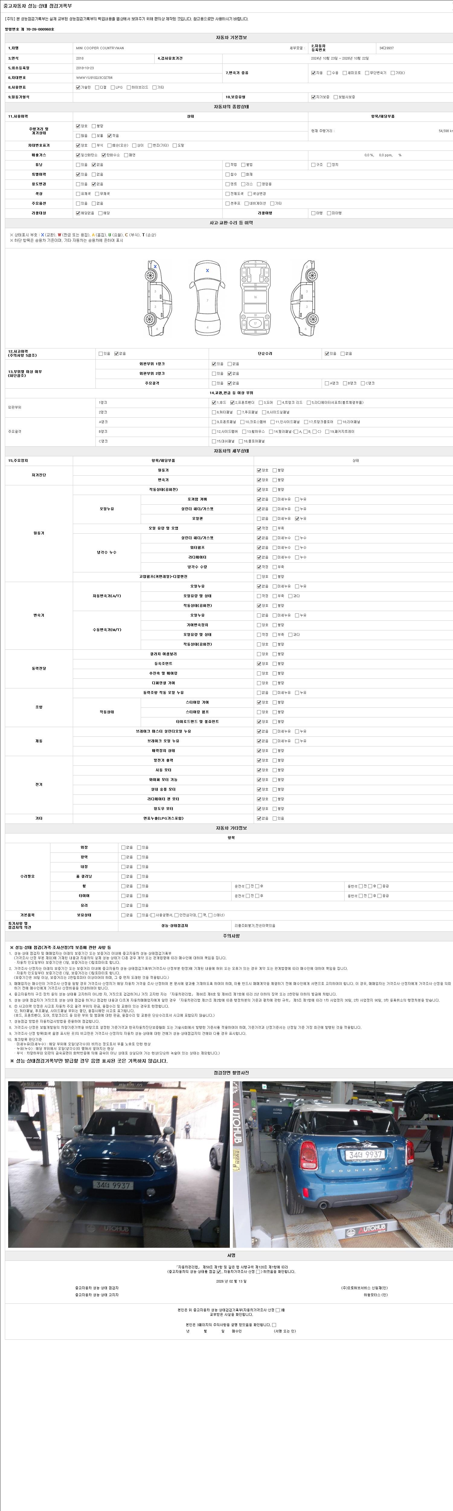2. 차량 등록증이나 성능점검지 등을 상담자에게 요청및 확인하시고 사전에 미리 점검 하시기를 권유드립니다.