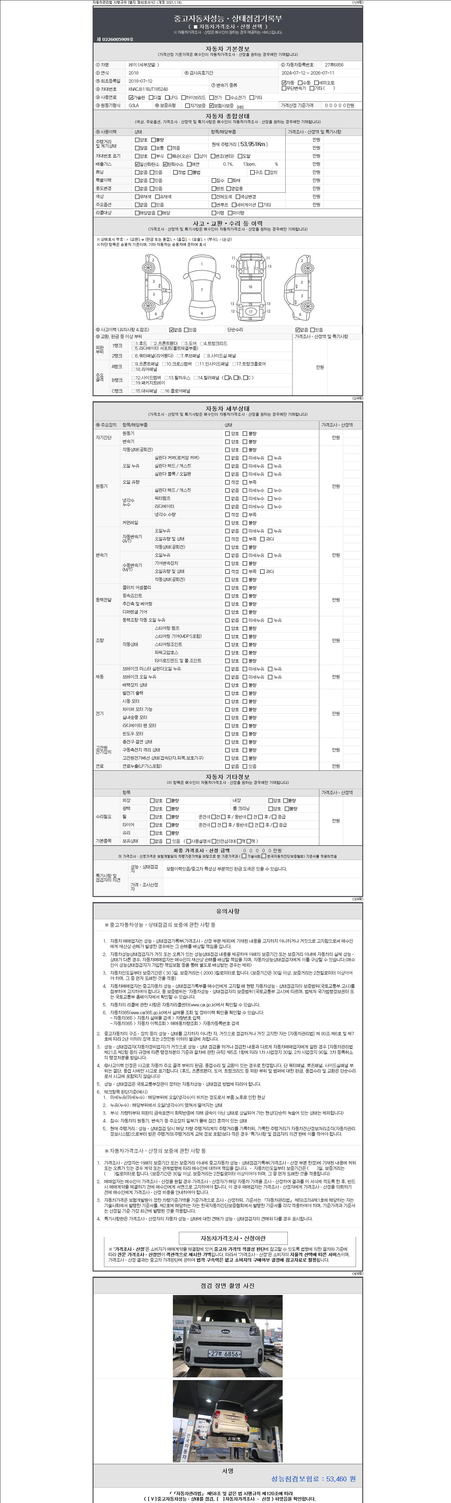 -중고자동차 매매업자를 통해 차량을 구입하실 경우 반드시 "중고자동차 성능, 상태점검 기록부"를 교뷰 받으셔야 하며, 매매업자는 반드시 의무 교부 하여야 압니다.